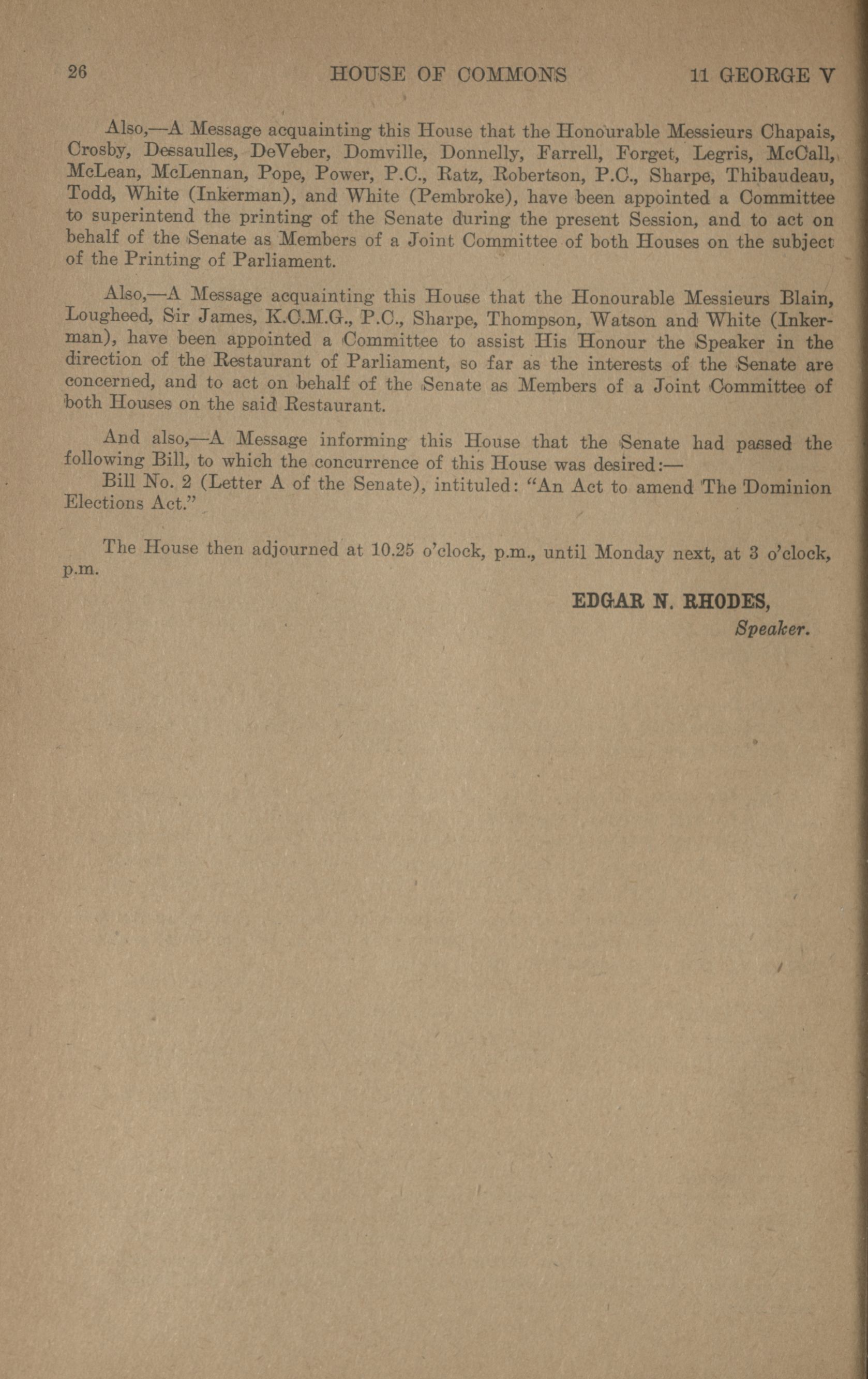 « House of Commons Votes and Proceedings, 13th Parliament, 5th Session
