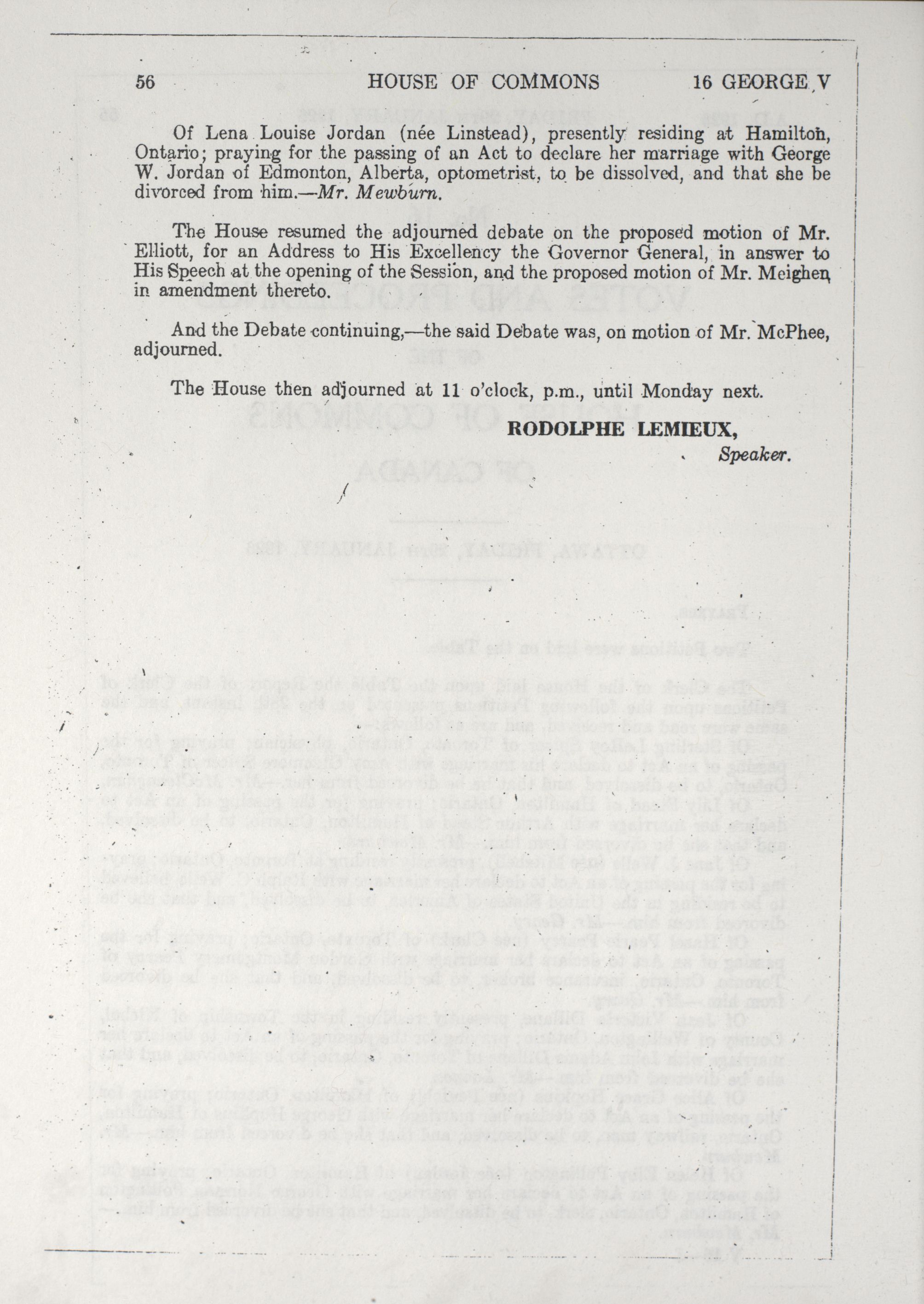 House of Commons Votes and Proceedings, 15th Parliament, 1st Session : 1-111