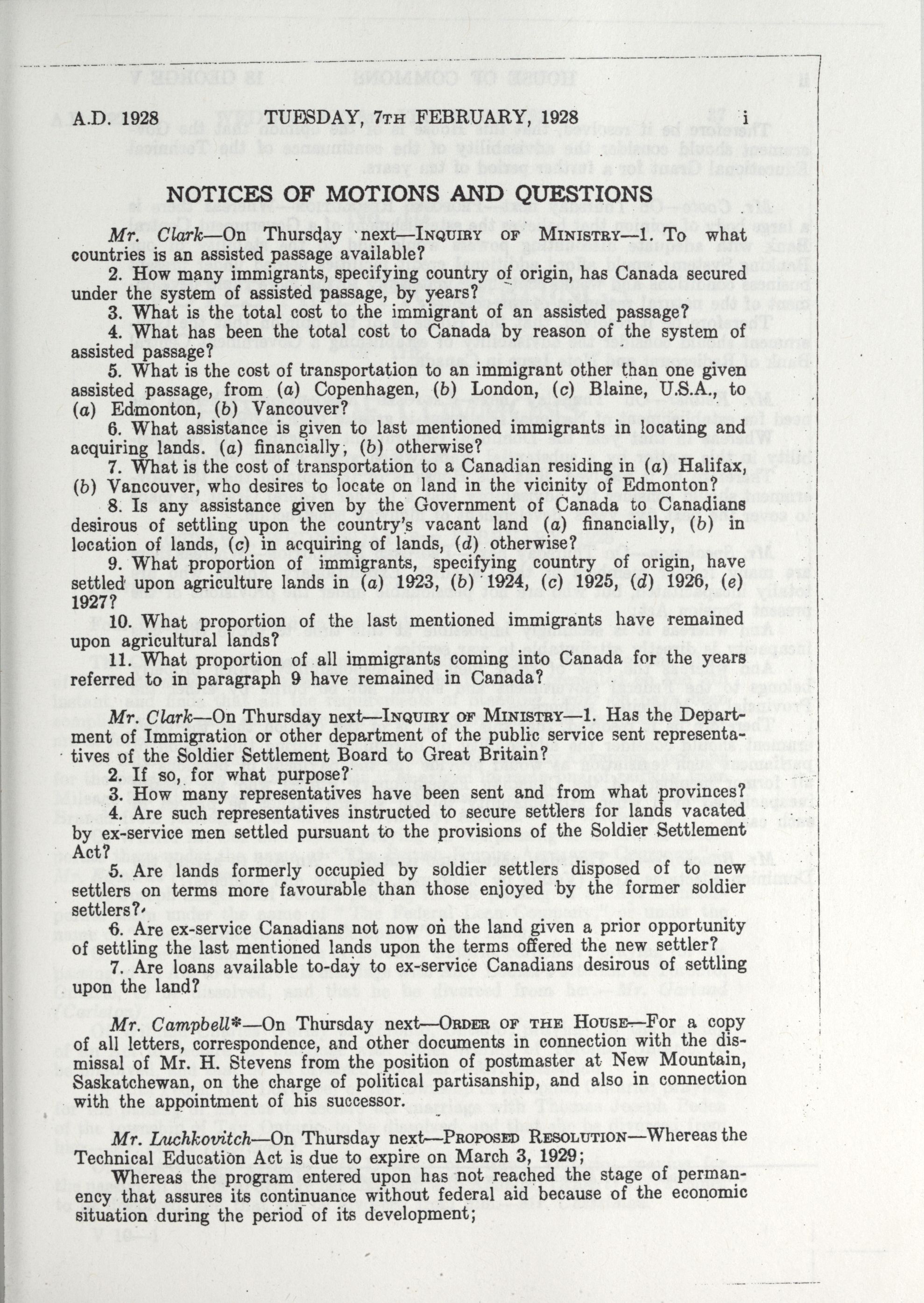 House of Commons Votes and Proceedings, 16th Parliament, 2nd Session : 1-93