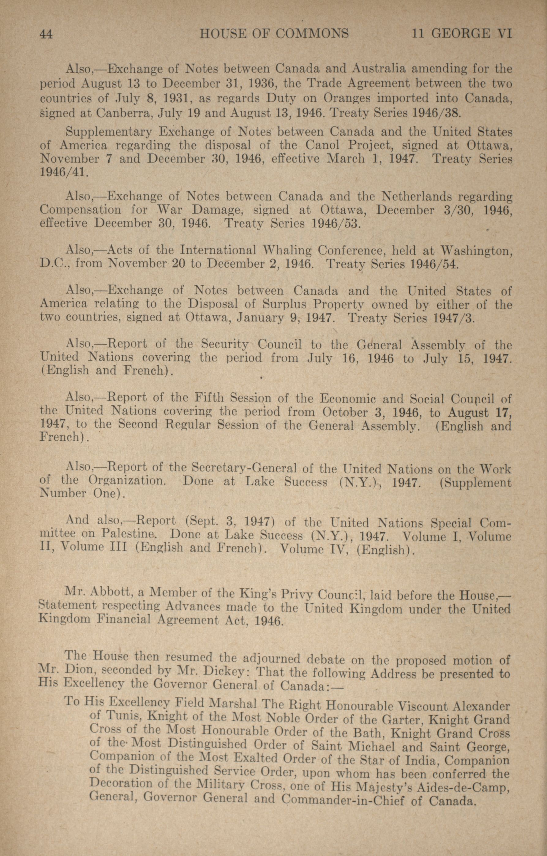 House of Commons Votes and Proceedings, 20th Parliament, 4th Session : 1-119