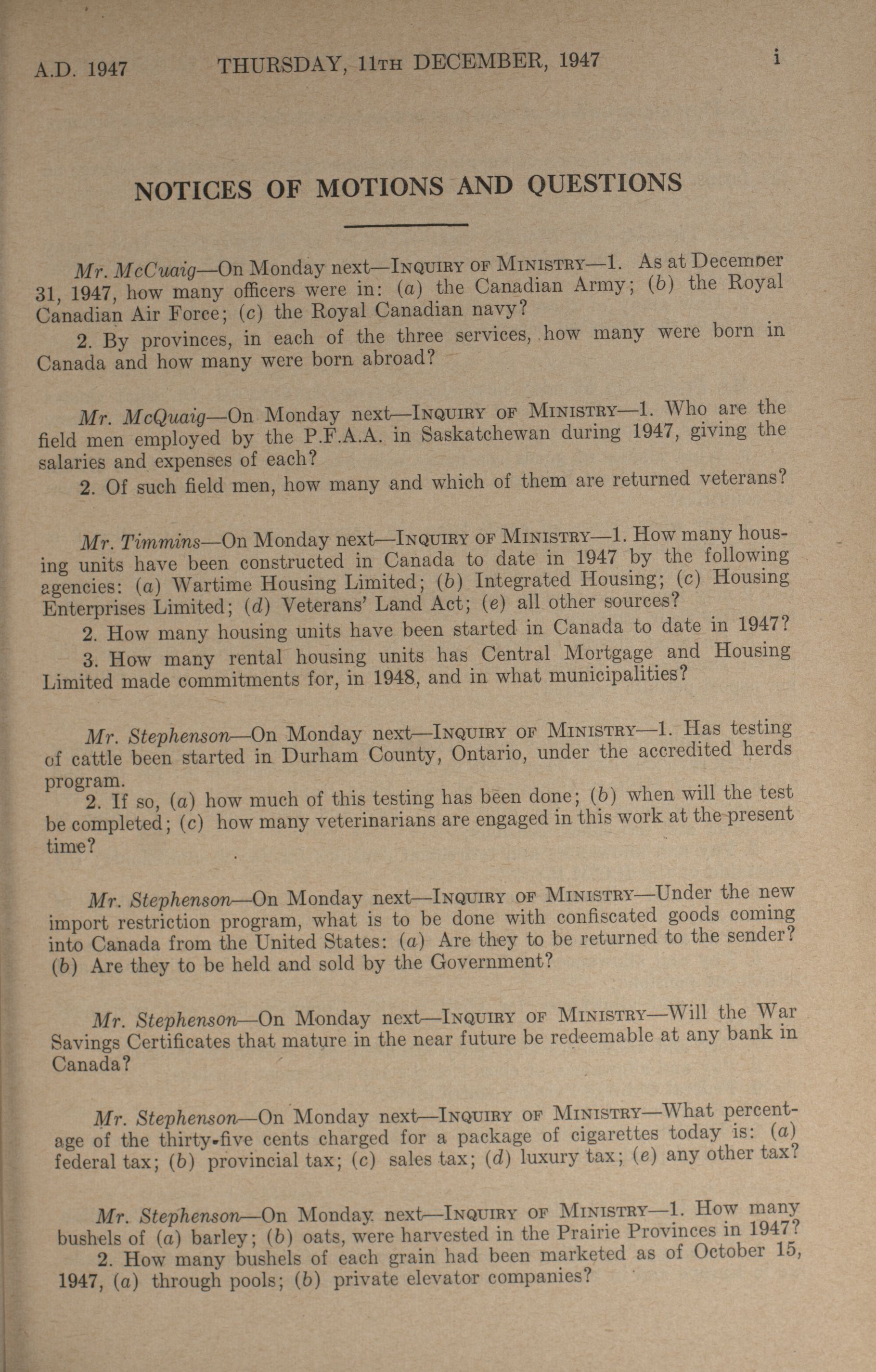 House of Commons Votes and Proceedings, 20th Parliament, 4th Session : 1-119