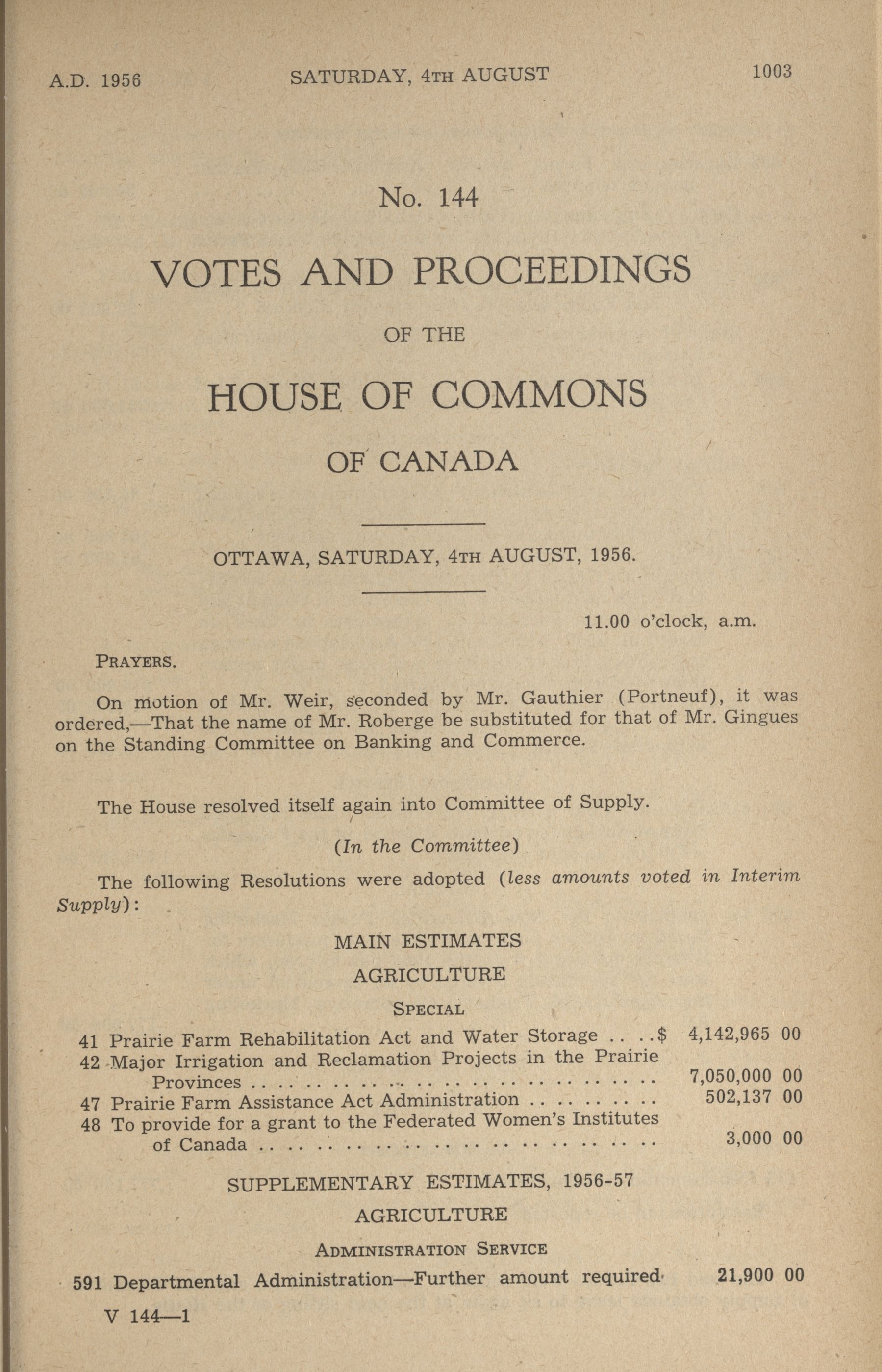 House of Commons Votes and Proceedings, 22nd Parliament, 3rd Session : 77-152