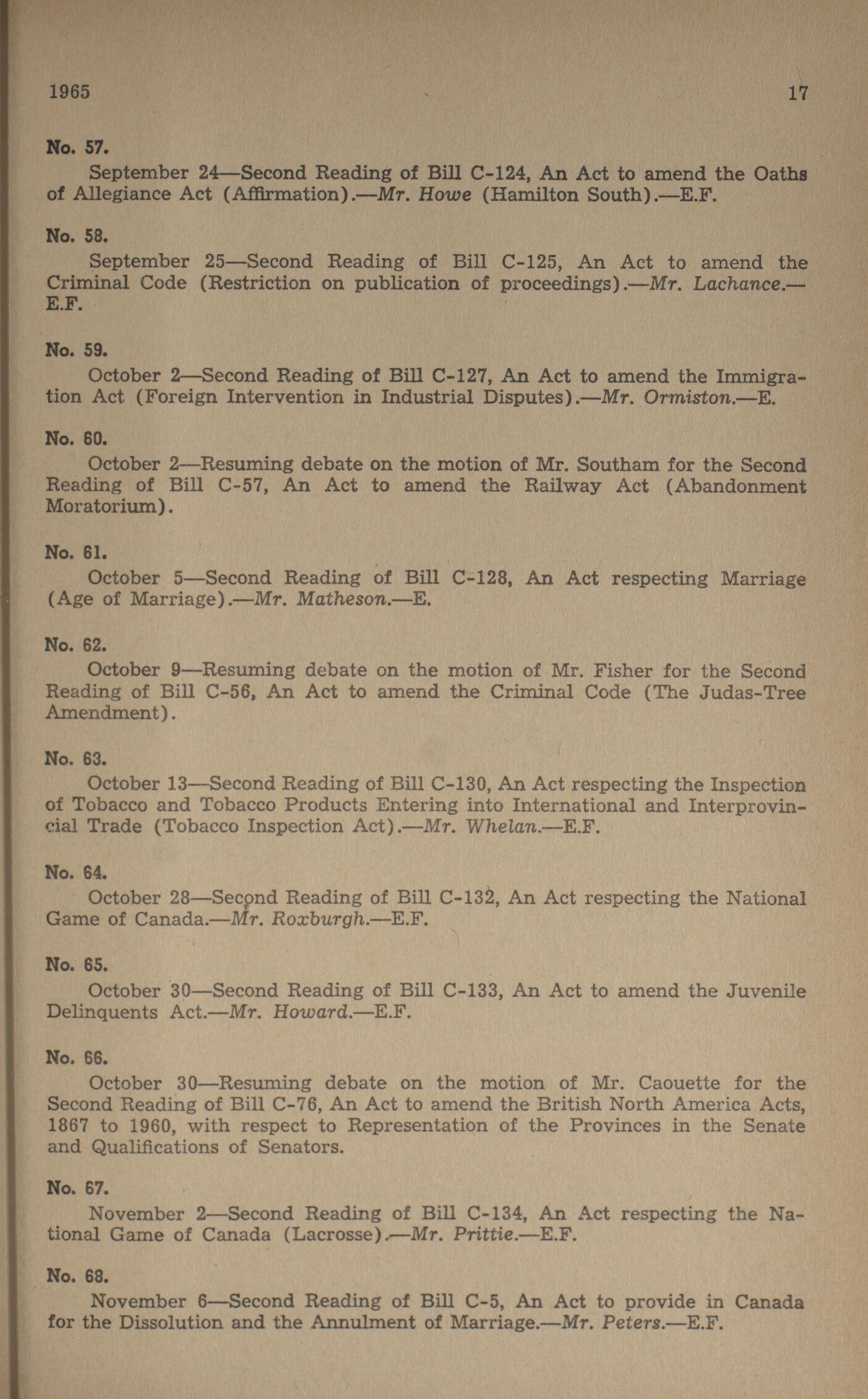 House of Commons Votes and Proceedings, 26th Parliament, 2nd Session : 186-248