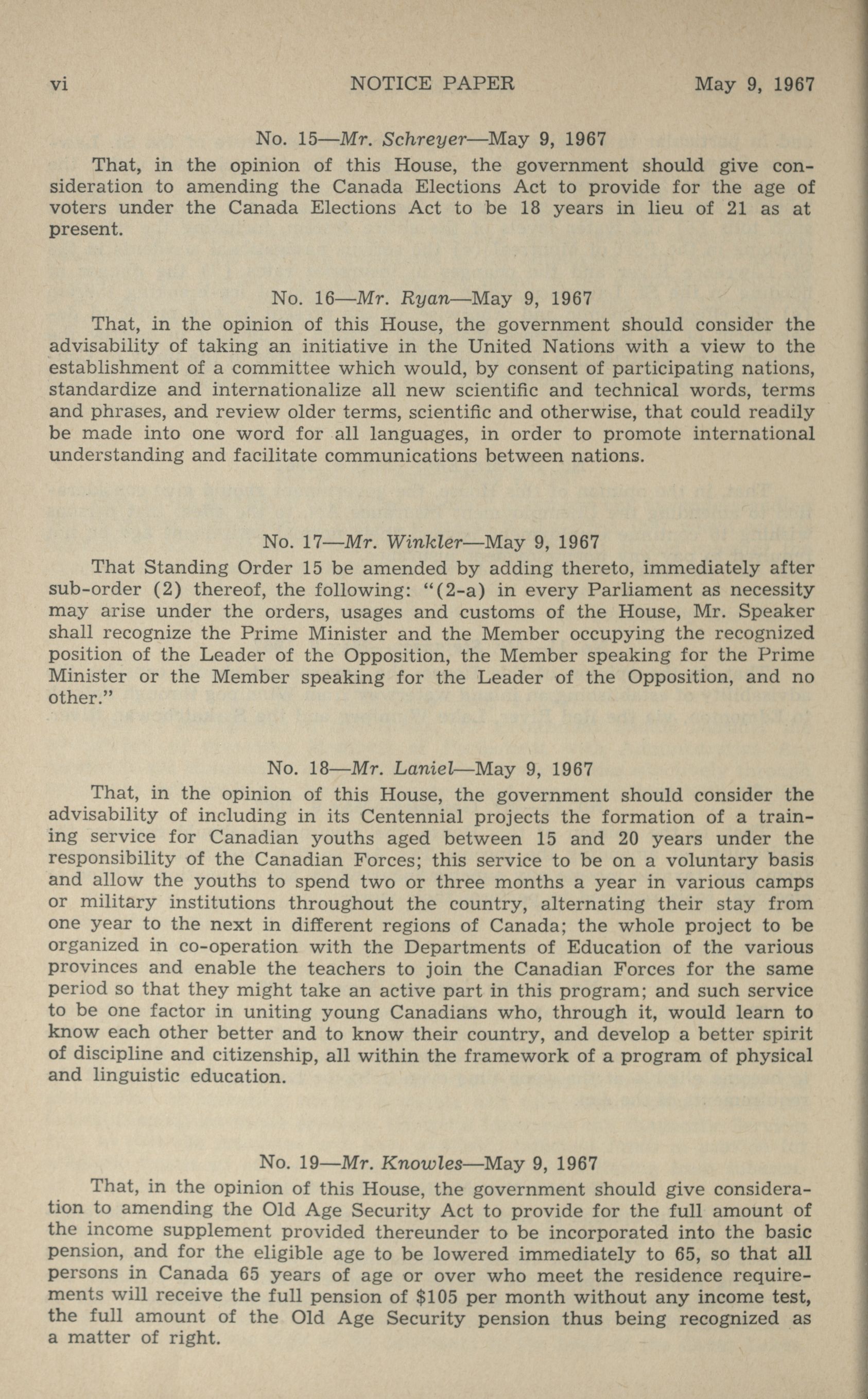 Pearson, Lester Bowles (1967-05-08 - 1968-04-19), Trudeau, Pierre Elliott (1968-04-20 - 1968-04-23)