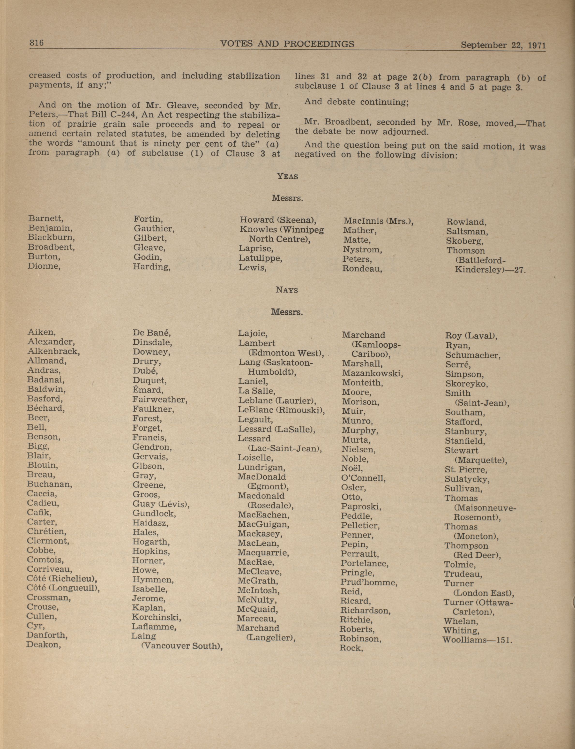 House of Commons Votes and Proceedings, 28th Parliament, 3rd Session : 164-244