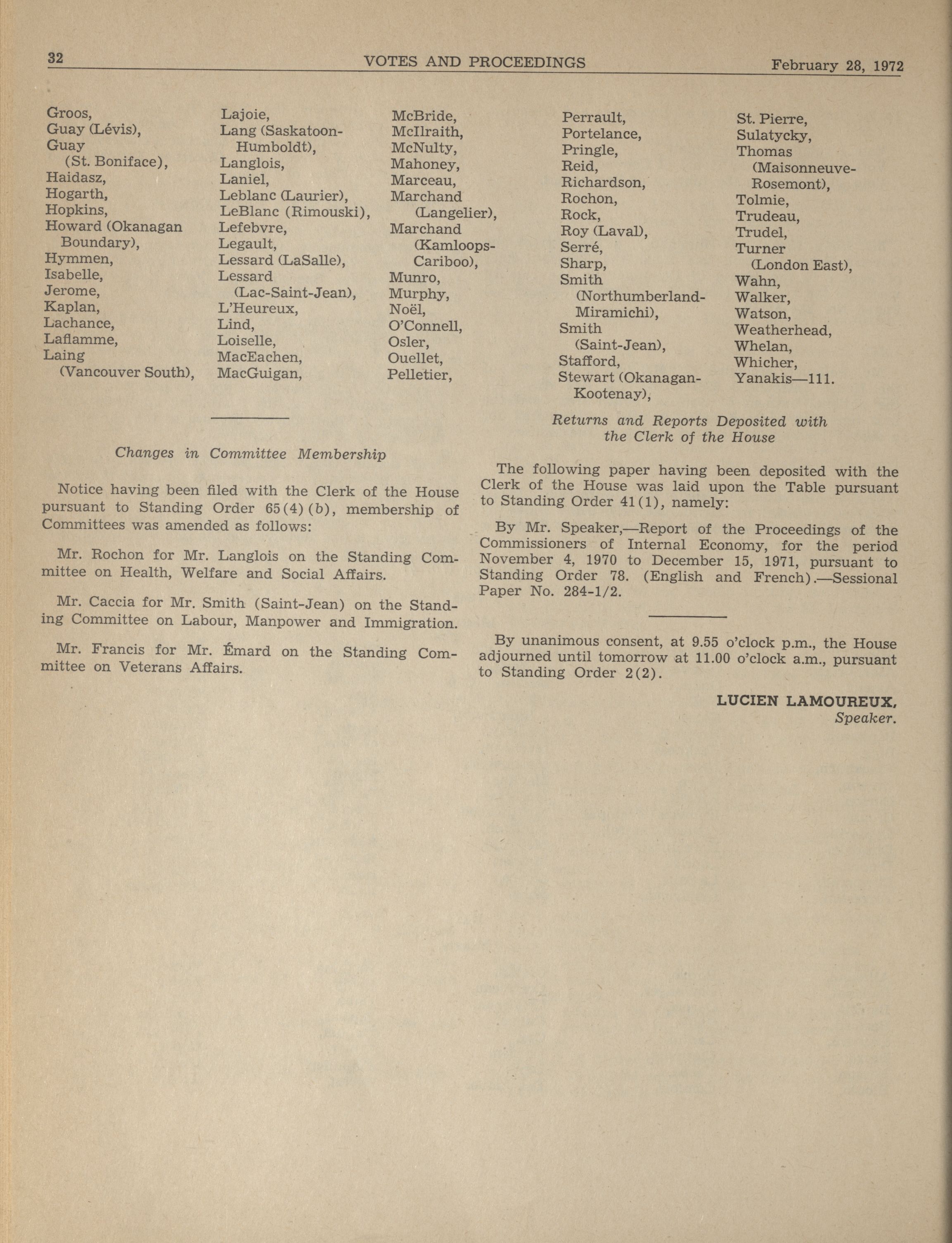 « House of Commons Votes and Proceedings, 28th Parliament, 4th Session