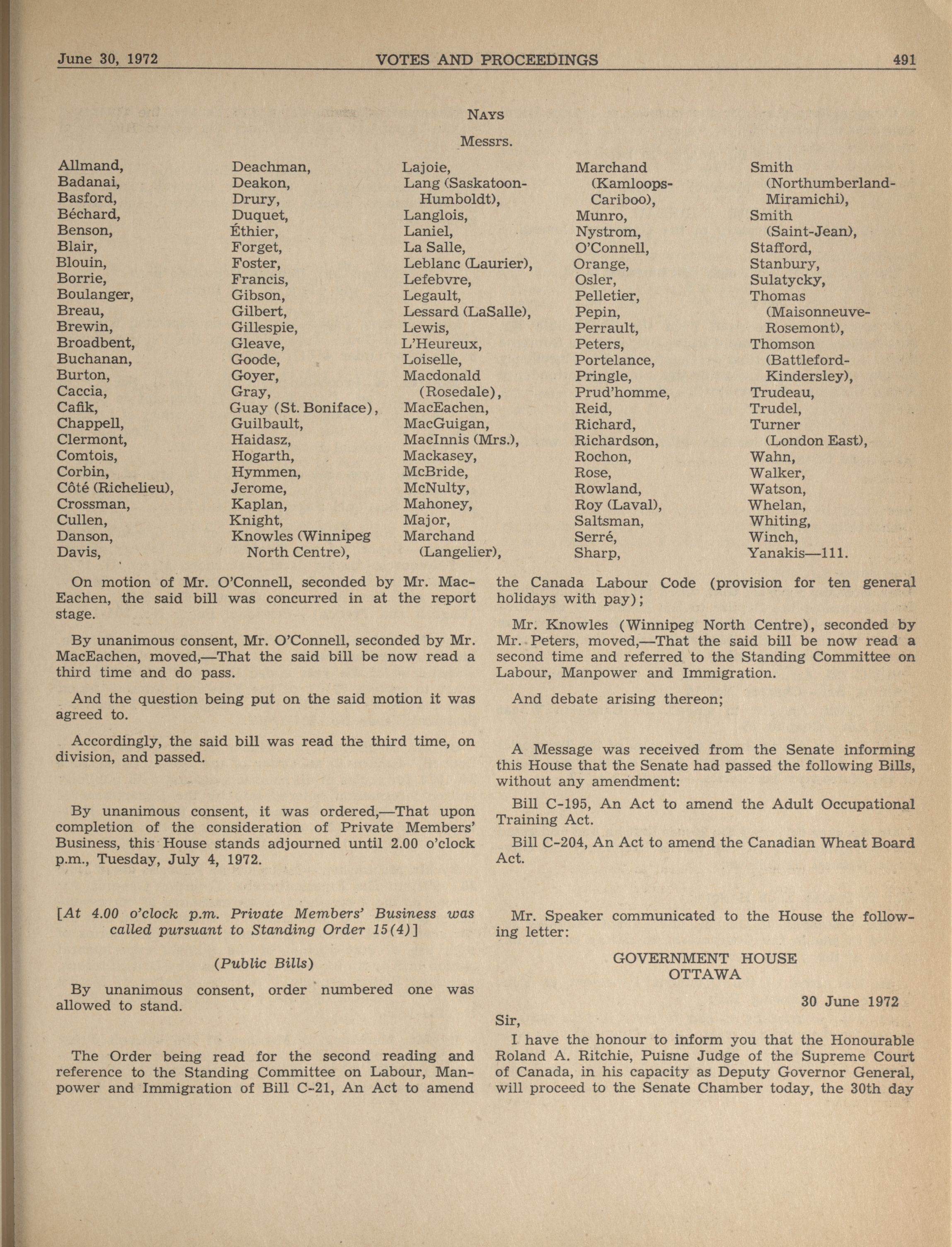House of Commons Votes and Proceedings, 28th Parliament, 4th Session : 1-91