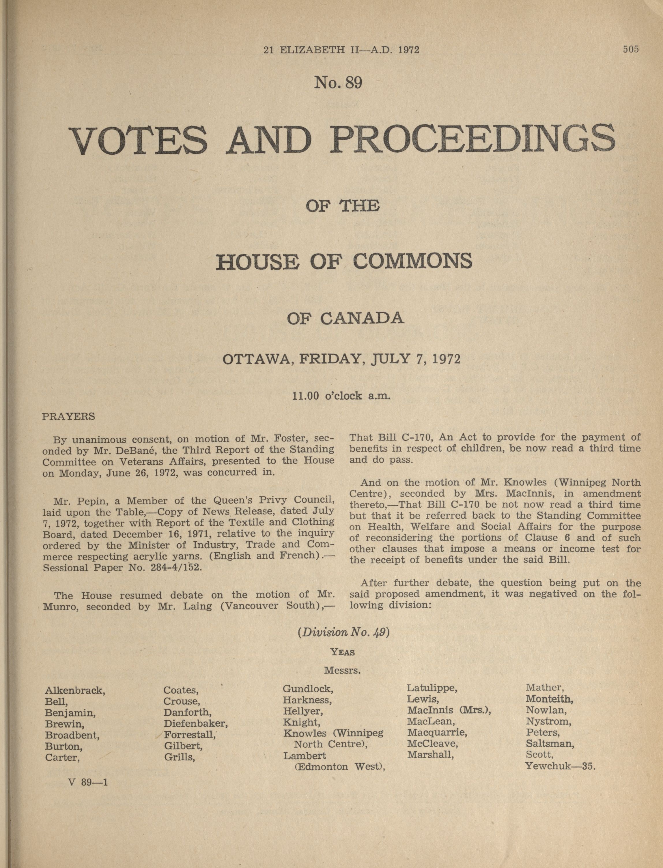 « House of Commons Votes and Proceedings, 28th Parliament, 4th Session