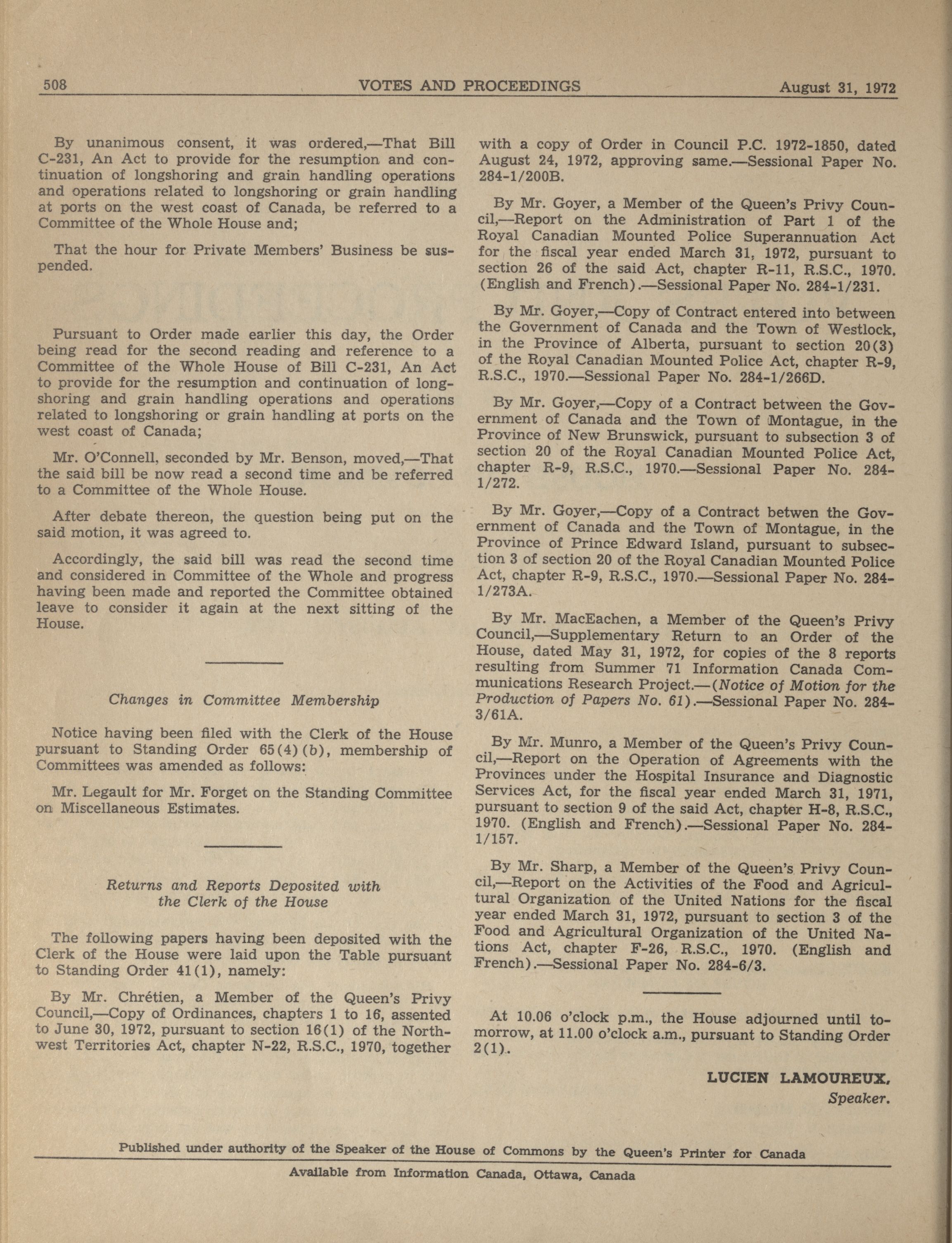 « House of Commons Votes and Proceedings, 28th Parliament, 4th Session