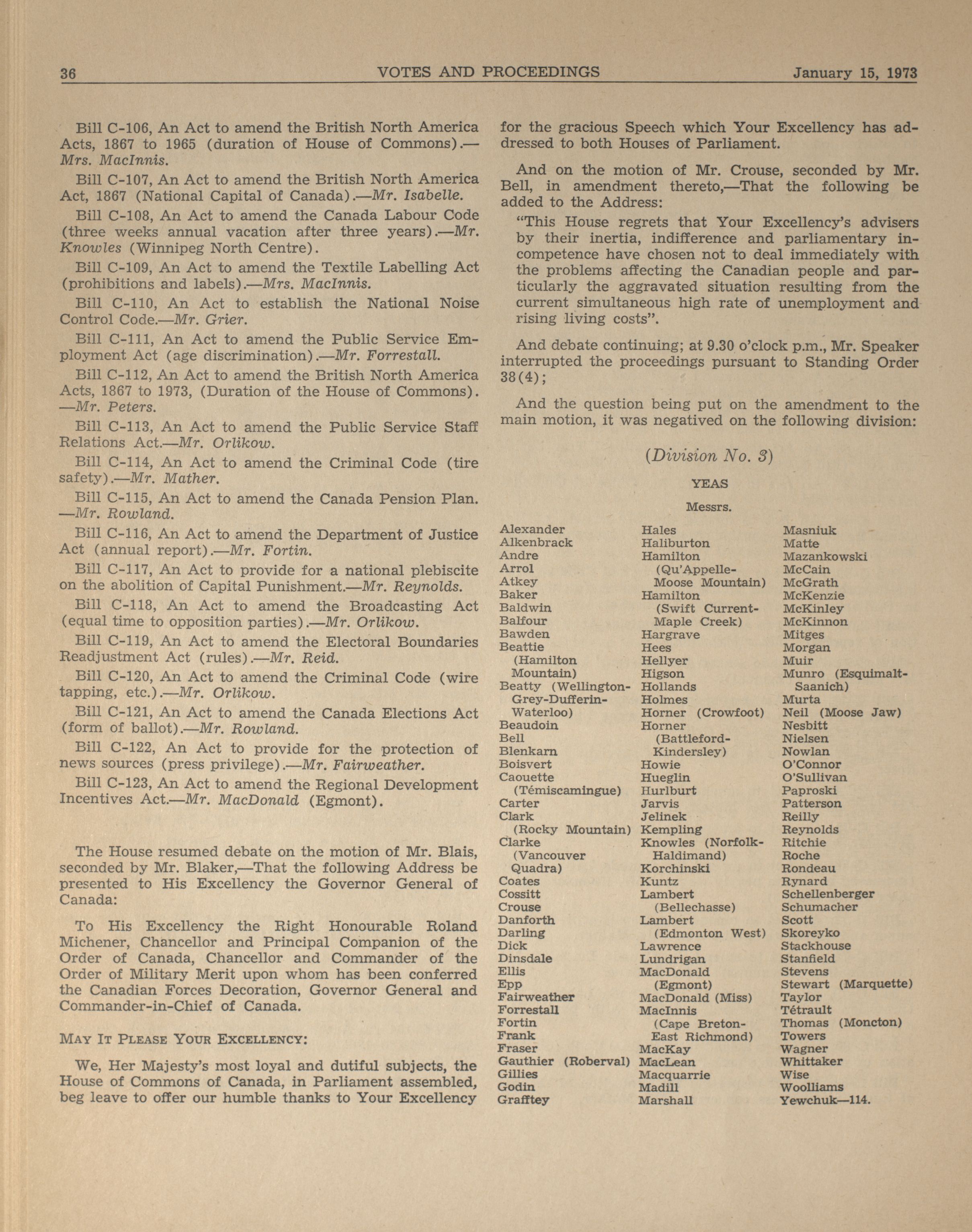 House of Commons Votes and Proceedings, 29th Parliament, 1st Session : 1-93