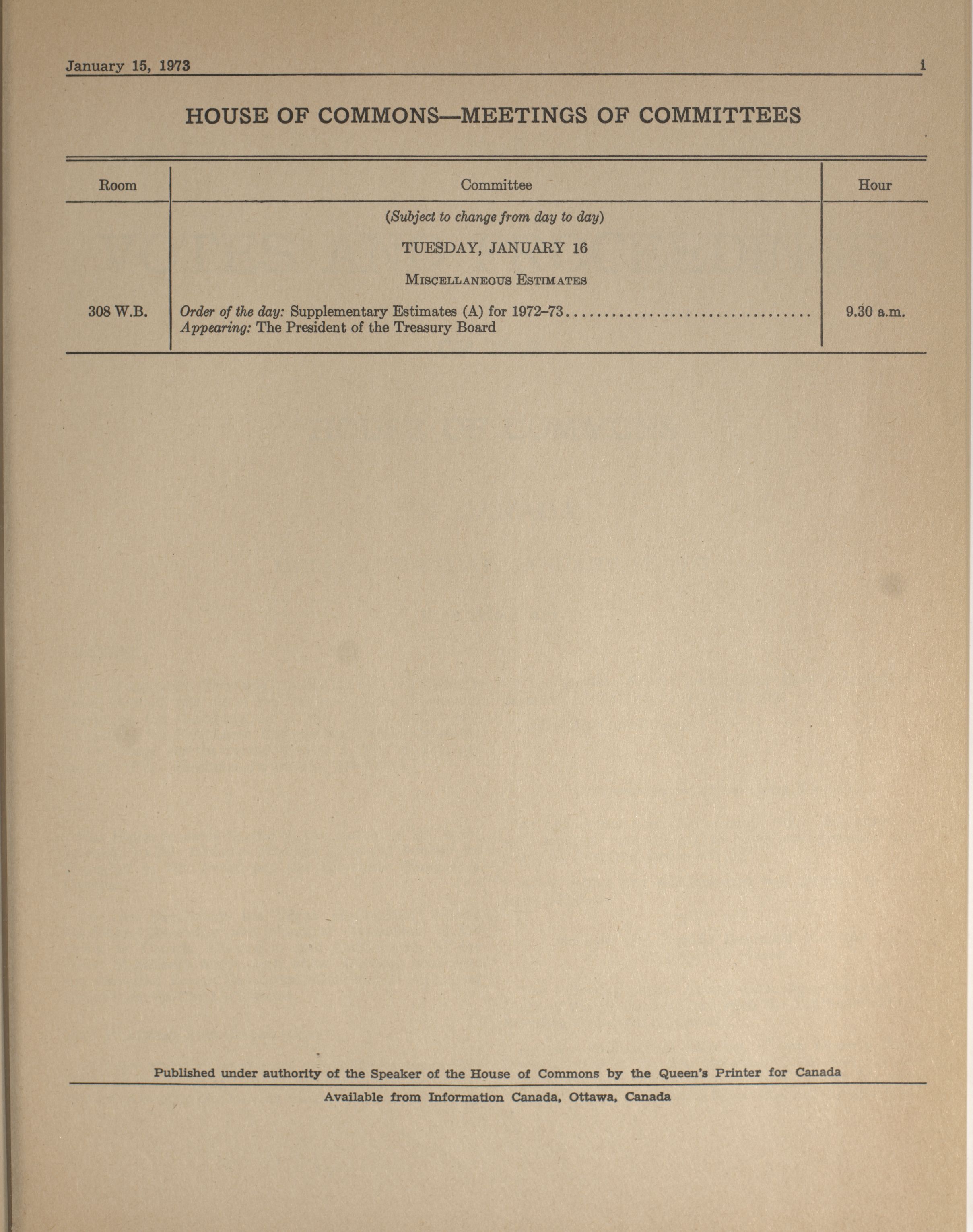 House of Commons Votes and Proceedings, 29th Parliament, 1st Session : 1-93