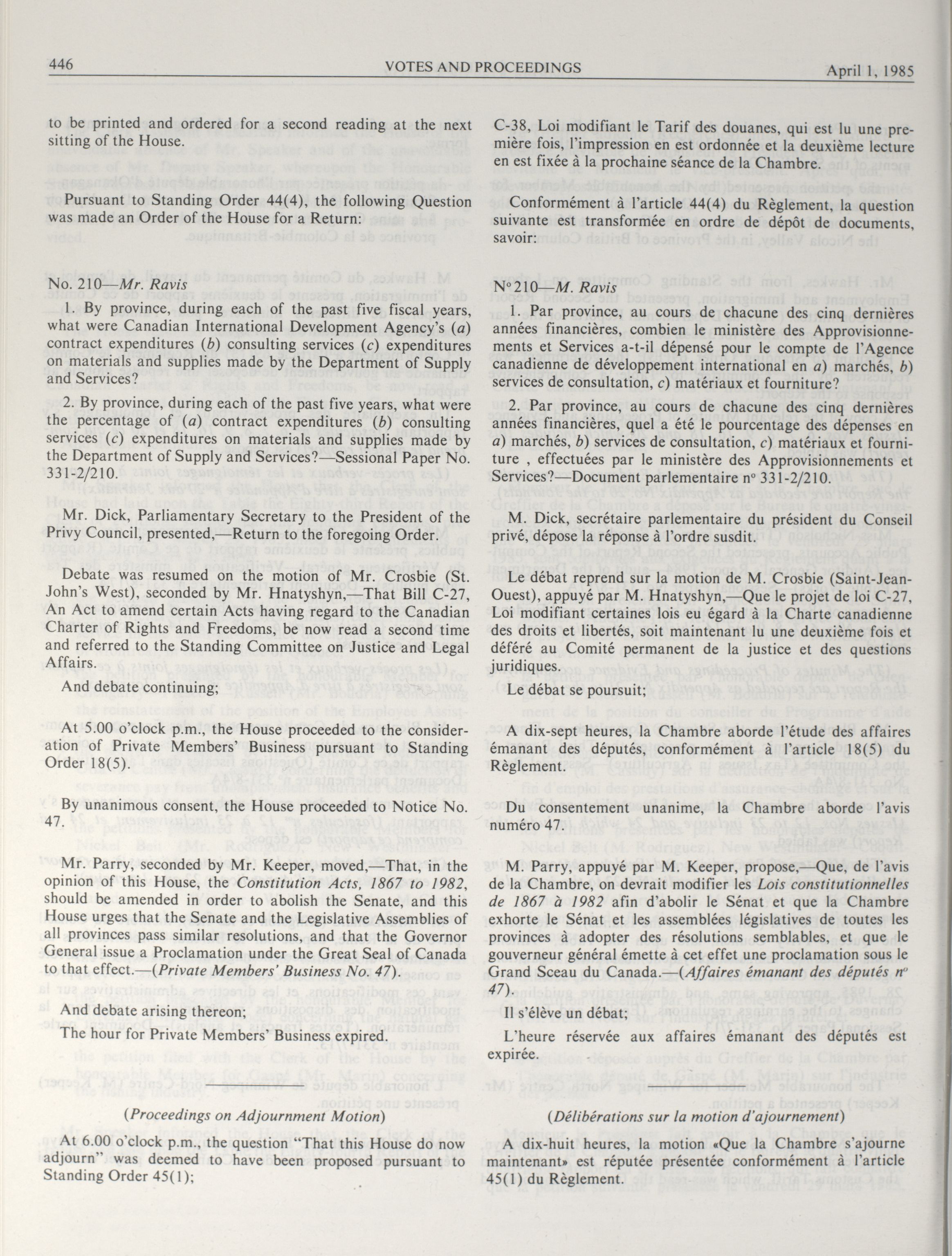 « Procès-verbaux de la Chambre des communes, 33e Législature, 1re Session