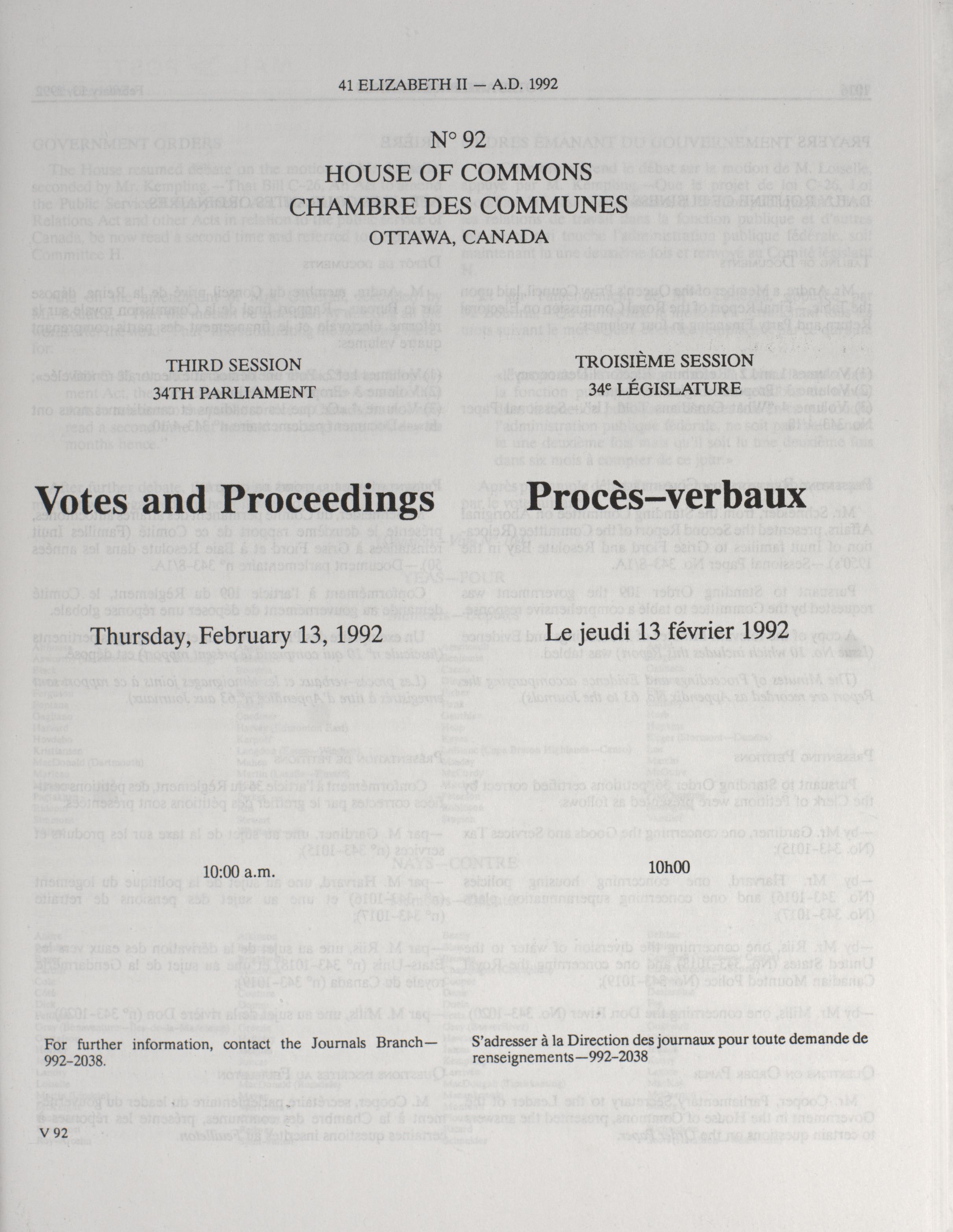 « House of Commons Votes and Proceedings, 34th Parliament, 3rd Session
