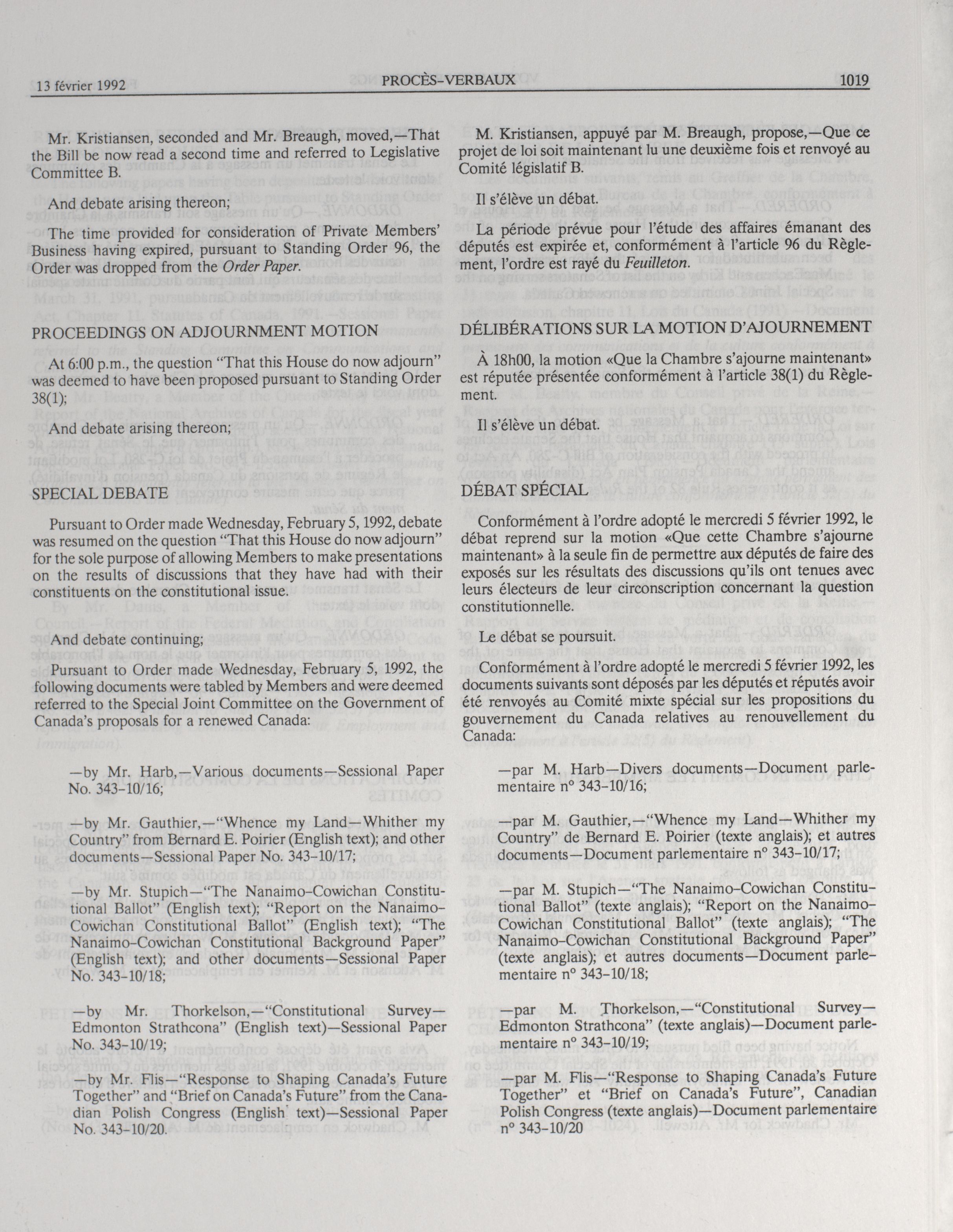 House of Commons Votes and Proceedings, 34th Parliament, 3rd Session : 84-152 = Procès-verbaux de la Chambre des communes, 34e Législature, 3e Session : 84-152