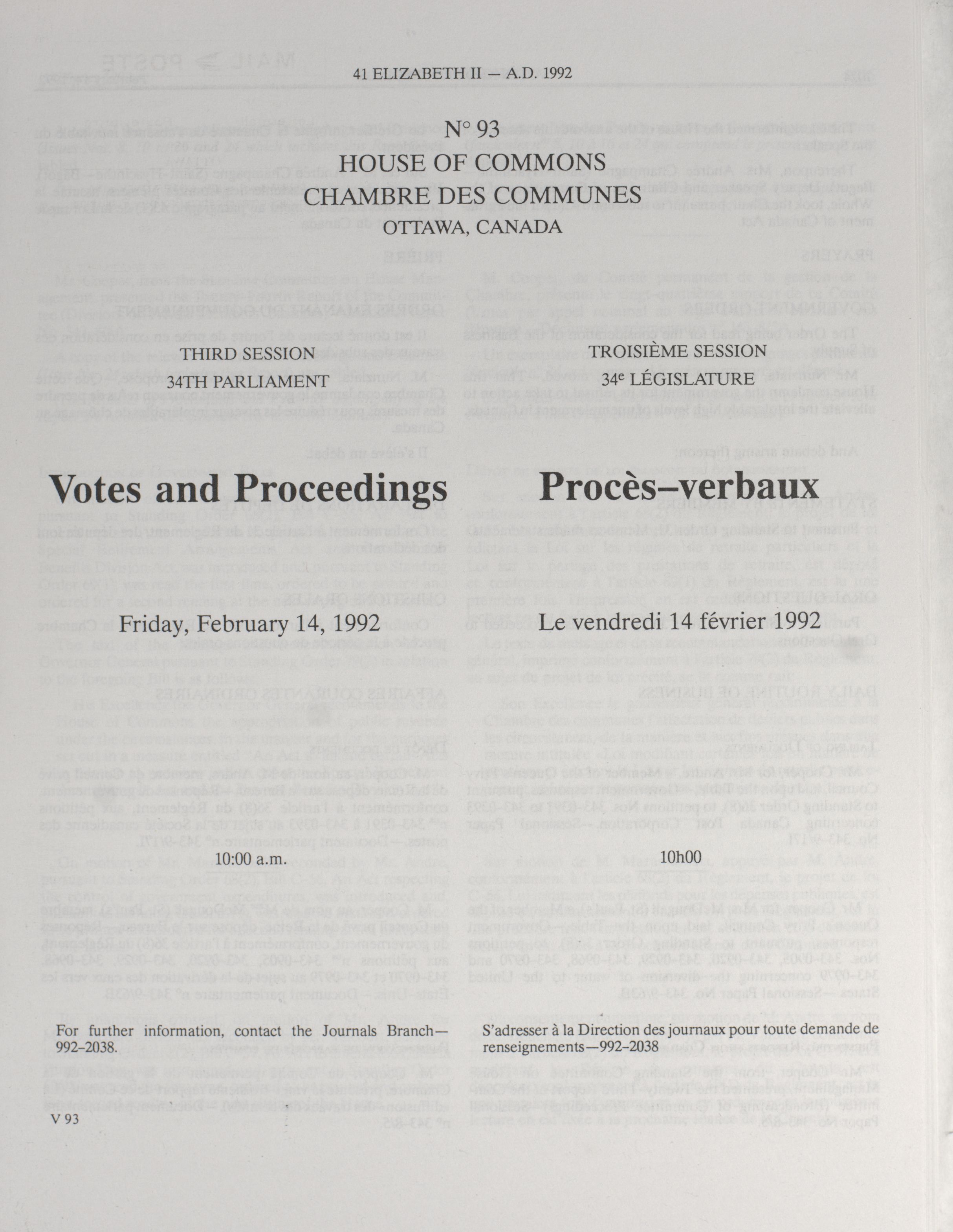 « House of Commons Votes and Proceedings, 34th Parliament, 3rd Session