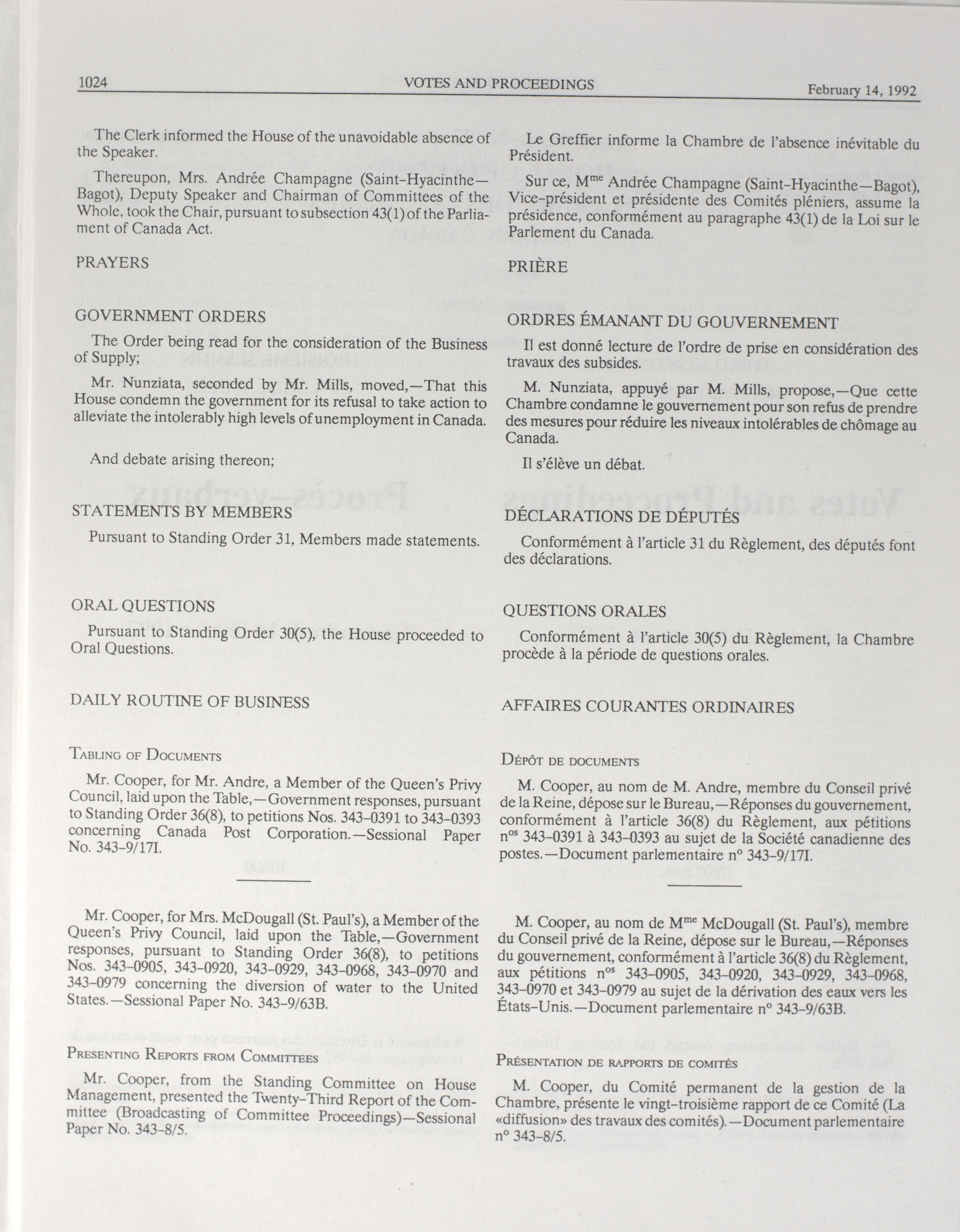 House of Commons Votes and Proceedings, 34th Parliament, 3rd Session : 84-152 = Procès-verbaux de la Chambre des communes, 34e Législature, 3e Session : 84-152