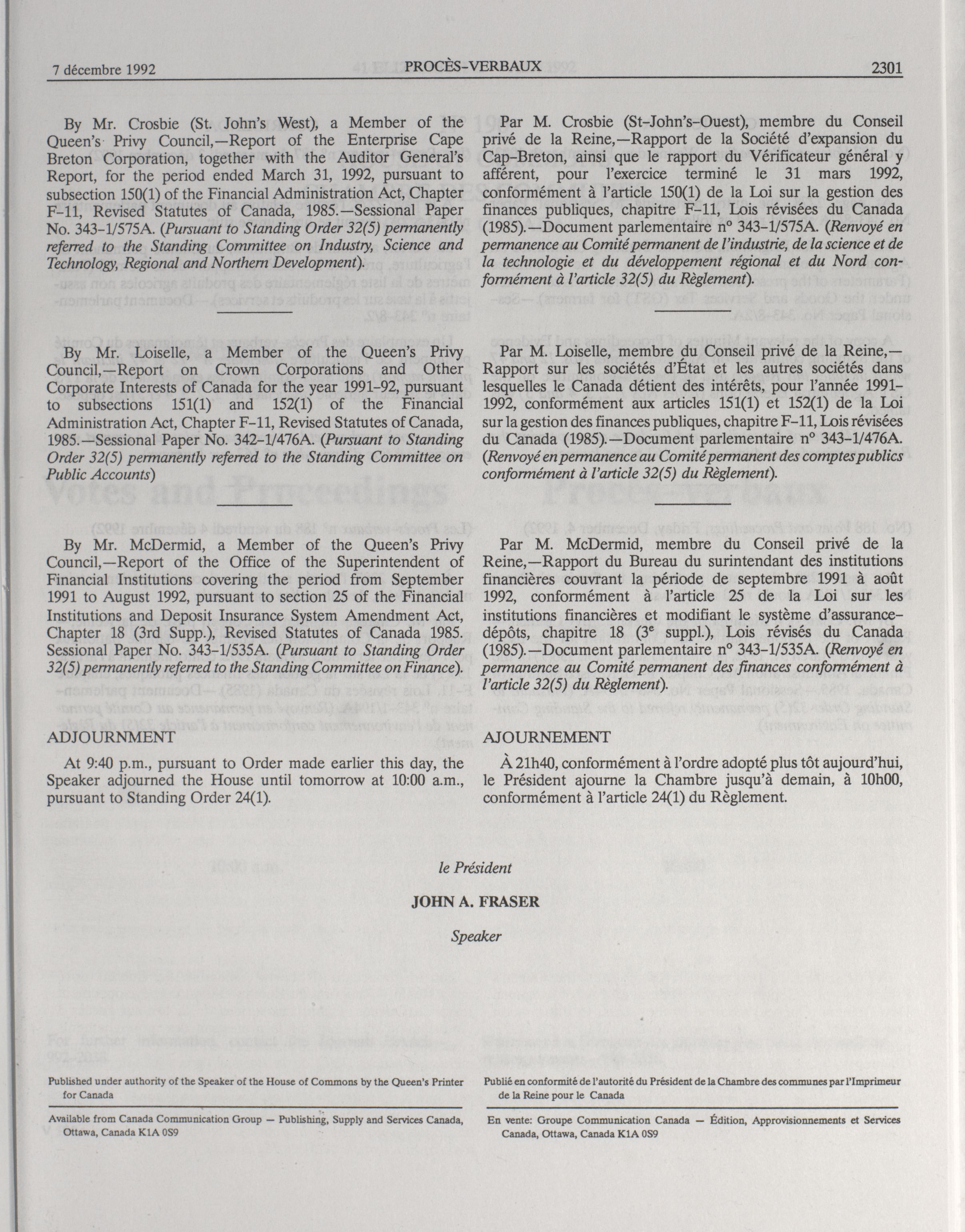 « House of Commons Votes and Proceedings, 34th Parliament, 3rd Session