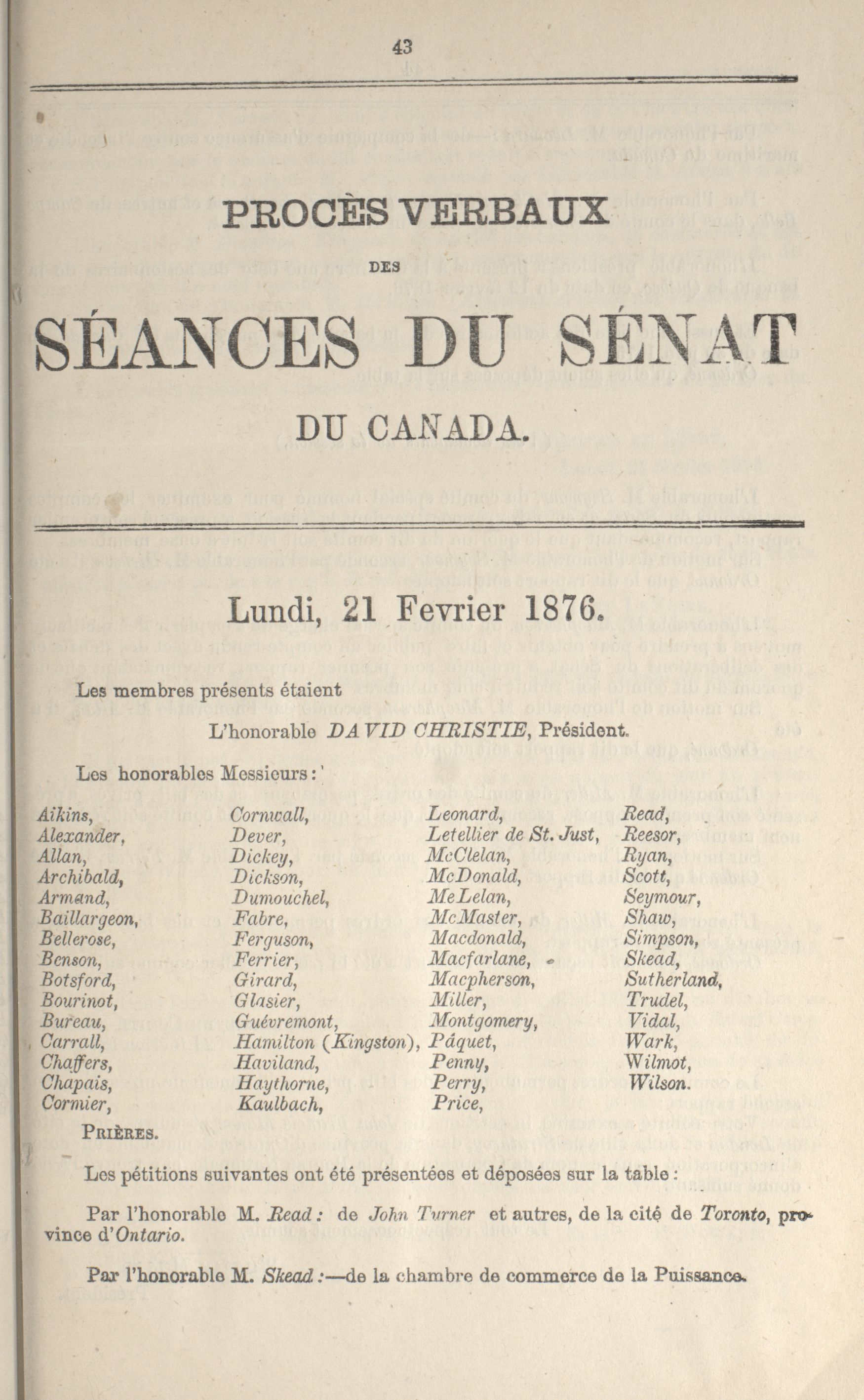 Procès-verbaux du Sénat, 3e Législature, 3e Session : 1-41