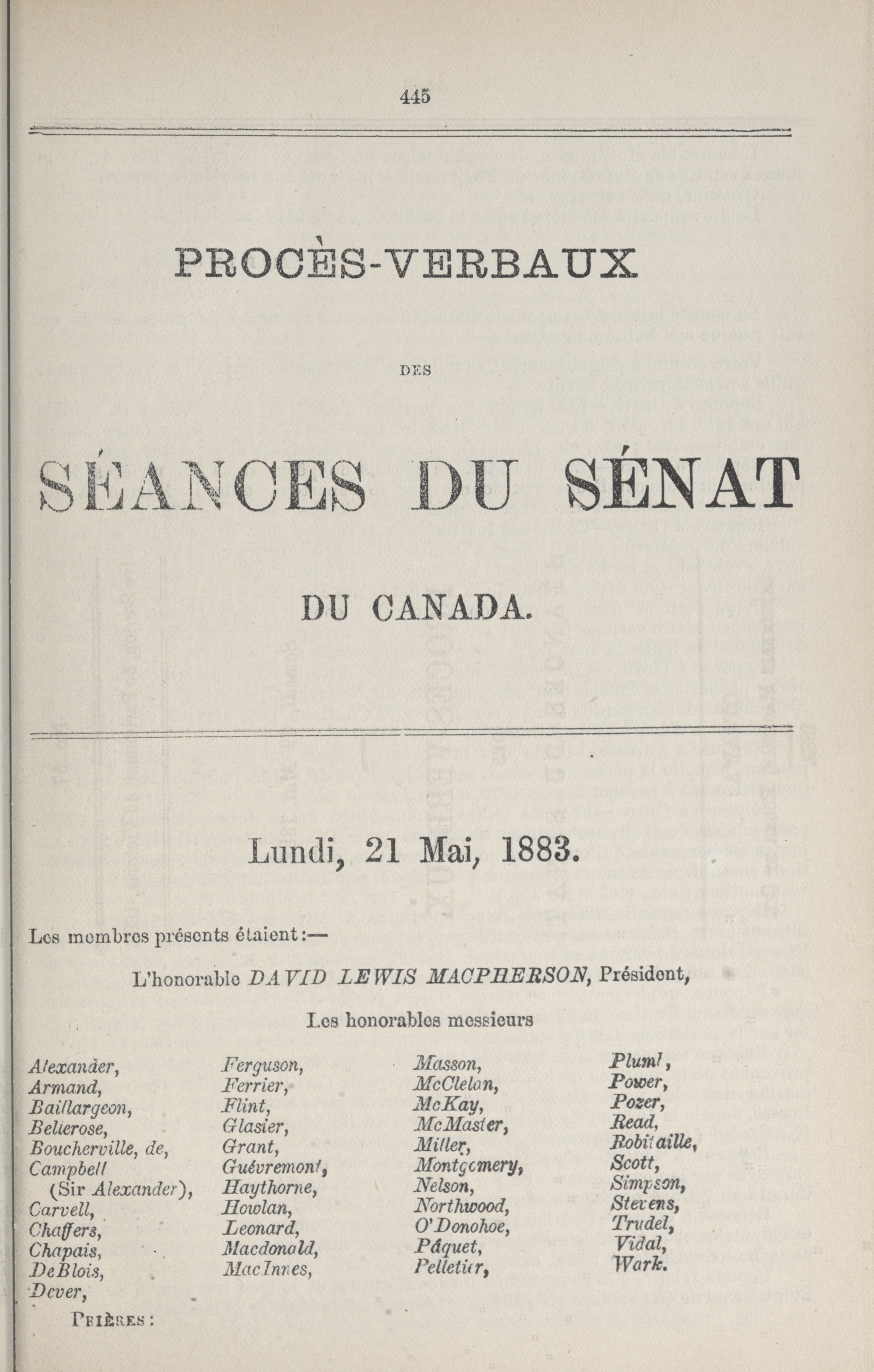 « Procès-verbaux du Sénat, 5e Législature, 1re Session