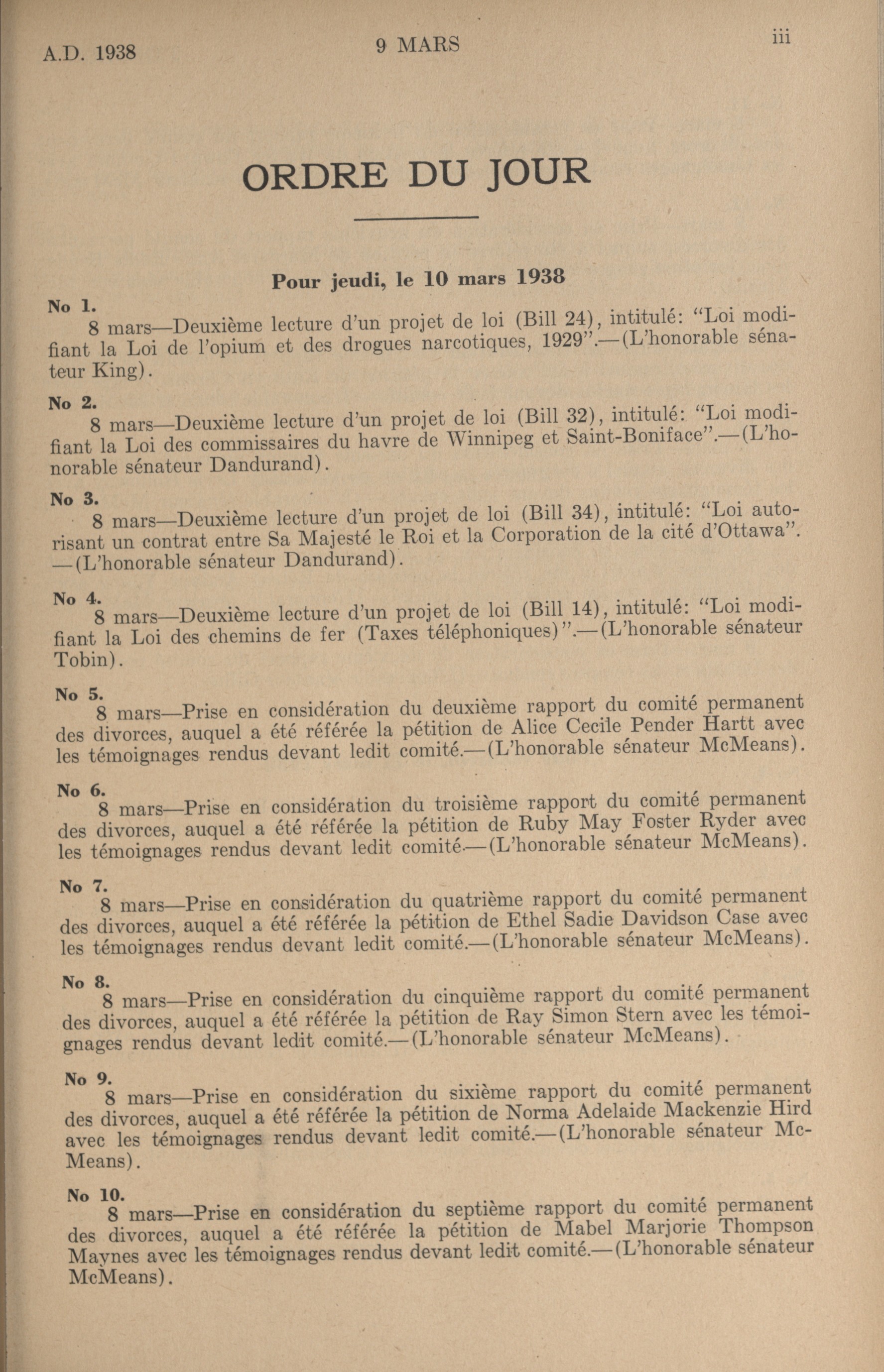 « Procès-verbaux du Sénat, 18e Législature, 3e Session