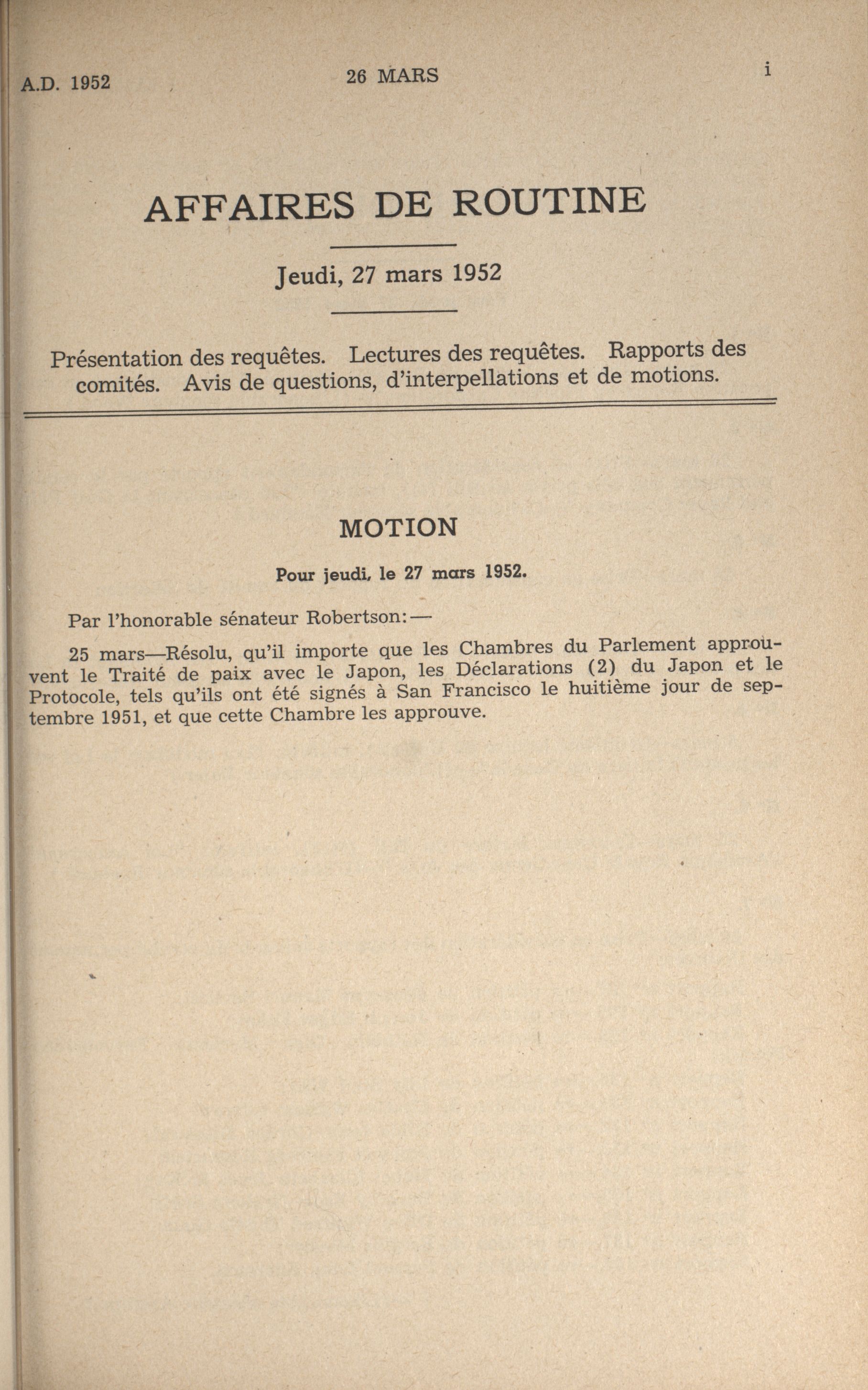Procès-verbaux du Sénat, 21e Législature, 6e Session : 1-60