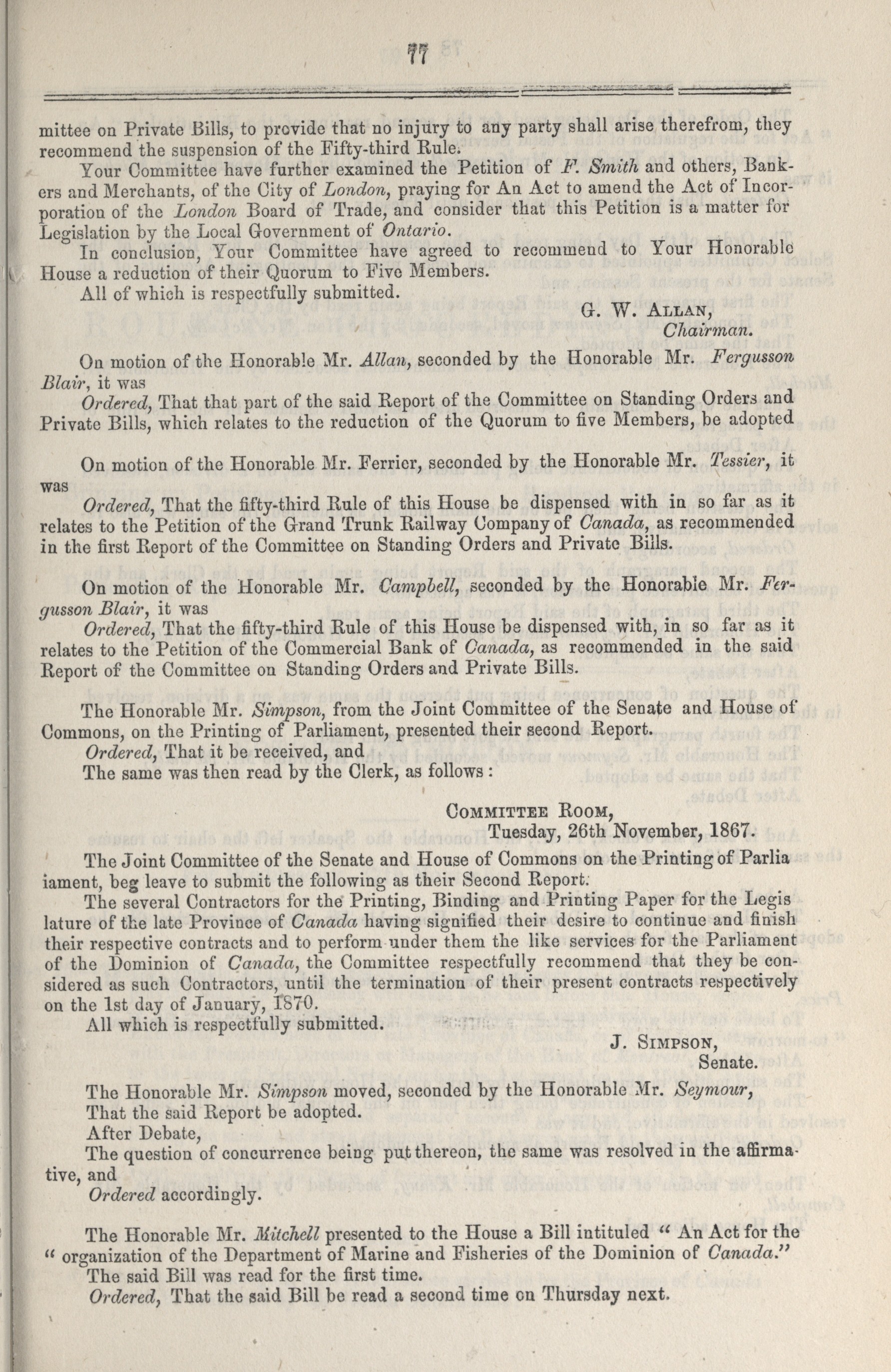 Senate Minutes of Proceedings, 1st Parliament, 1st Session : 1-75