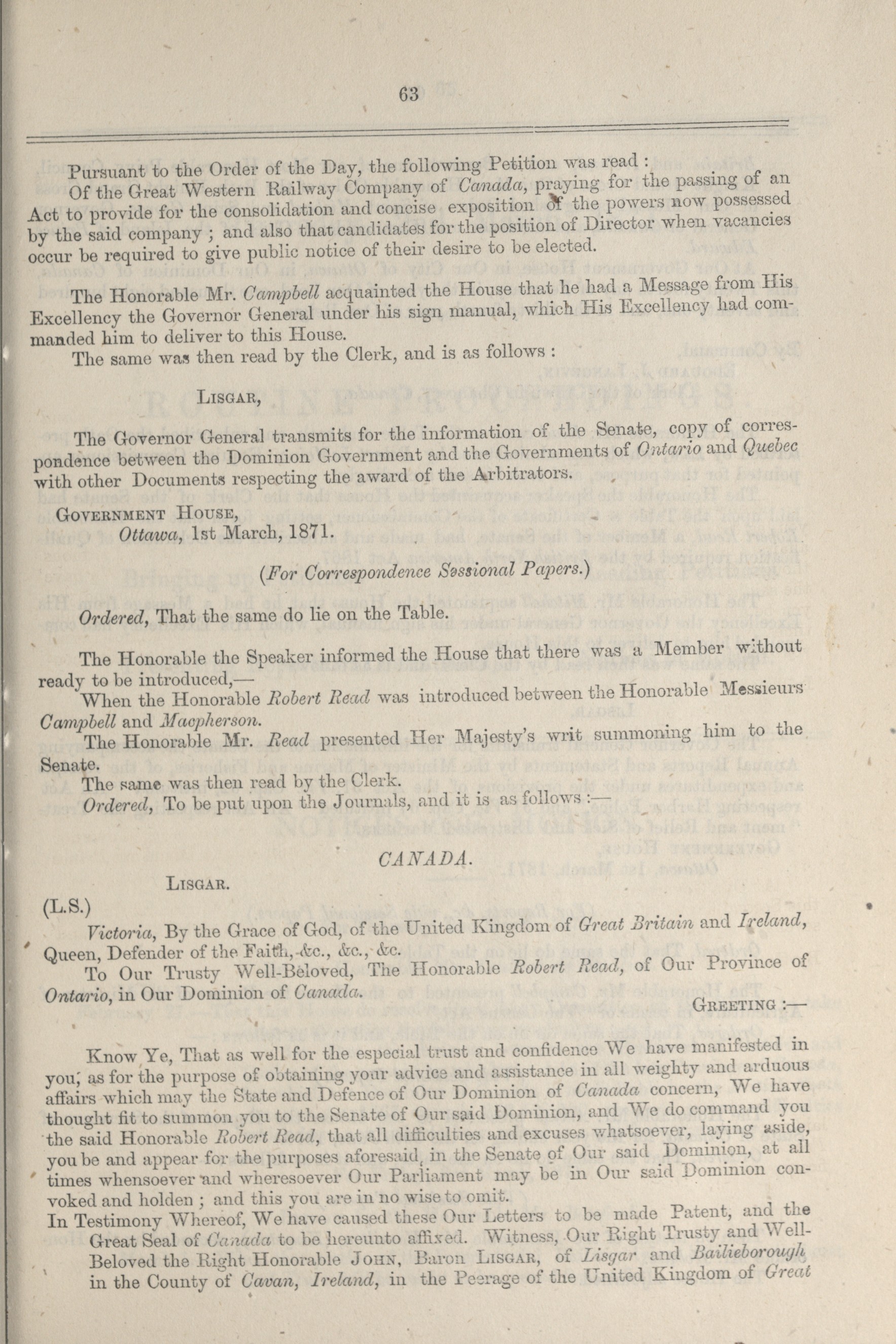 « Senate Minutes of Proceedings, 1st Parliament, 4th Session
