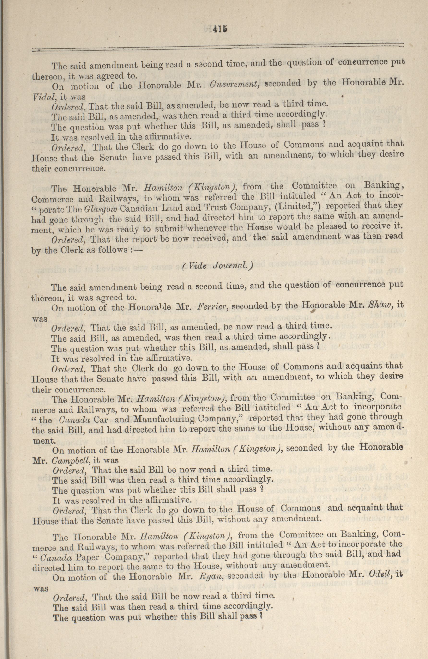 « Senate Minutes of Proceedings, 2nd Parliament, 1st Session
