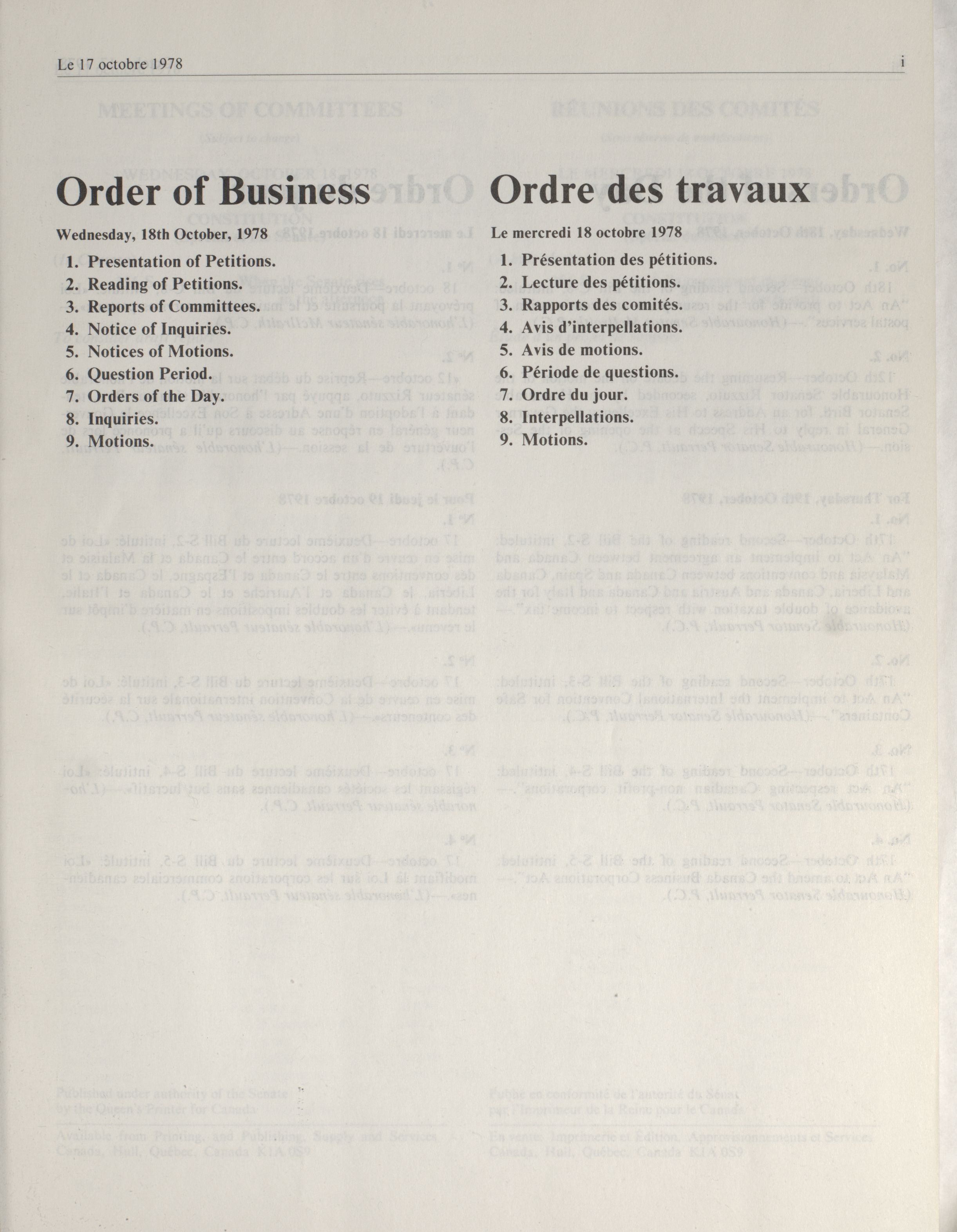 Senate Minutes of Proceedings, 30th Parliament, 4th Session : 1-66 = Procès-verbaux du Sénat, 30e Législature, 4e Session : 1-66