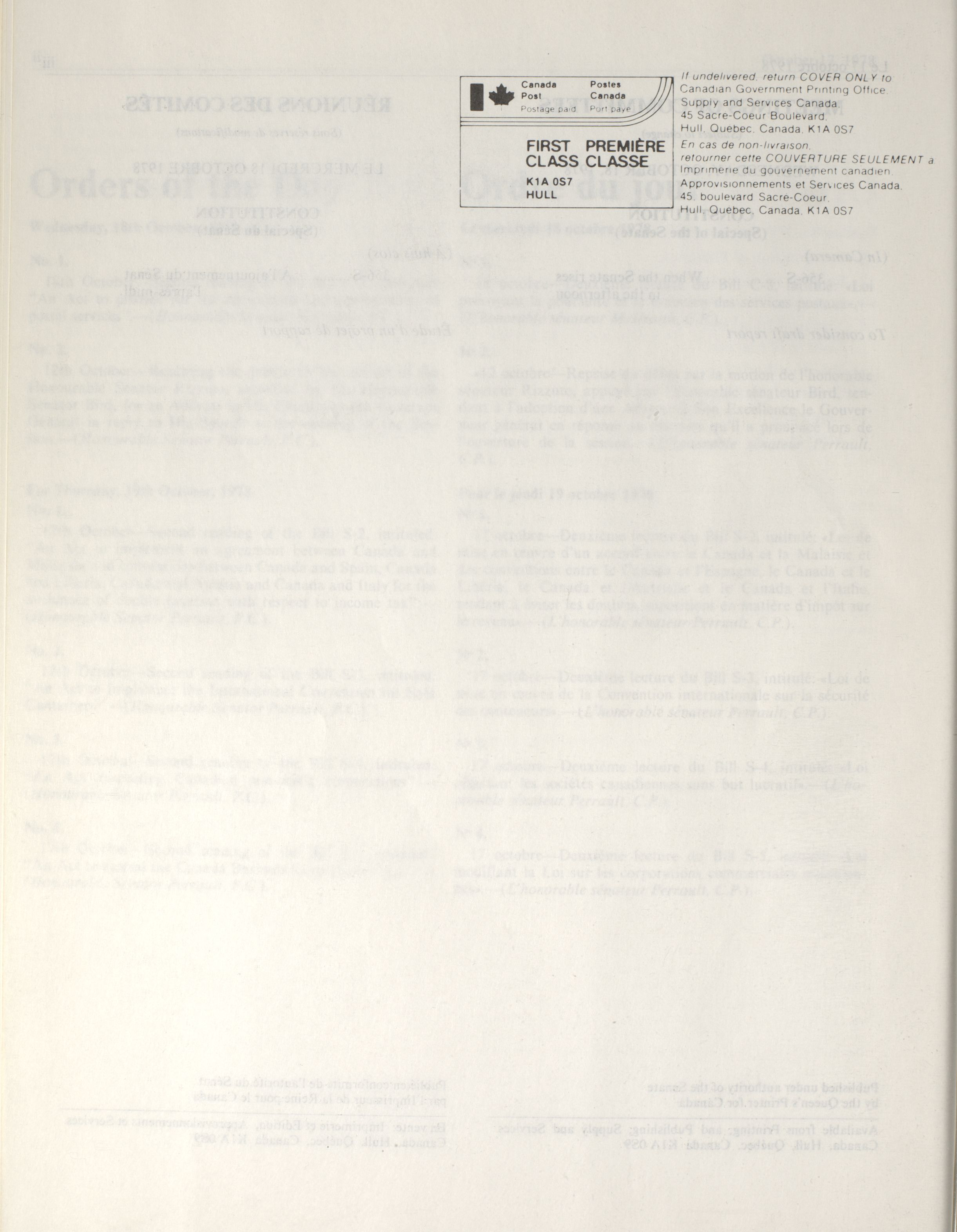 Senate Minutes of Proceedings, 30th Parliament, 4th Session : 1-66 = Procès-verbaux du Sénat, 30e Législature, 4e Session : 1-66