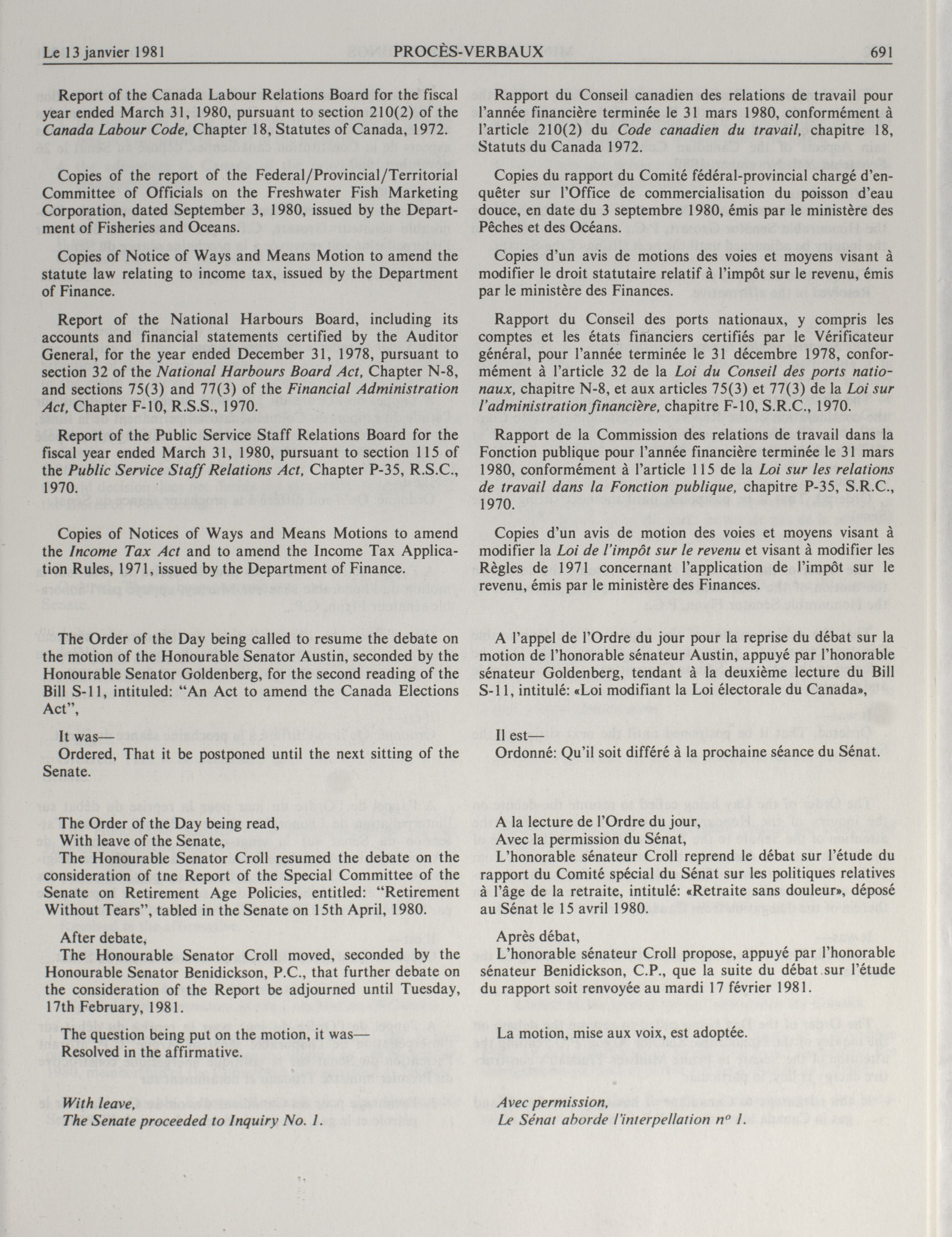 « Procès-verbaux du Sénat, 32e Législature, 1re Session
