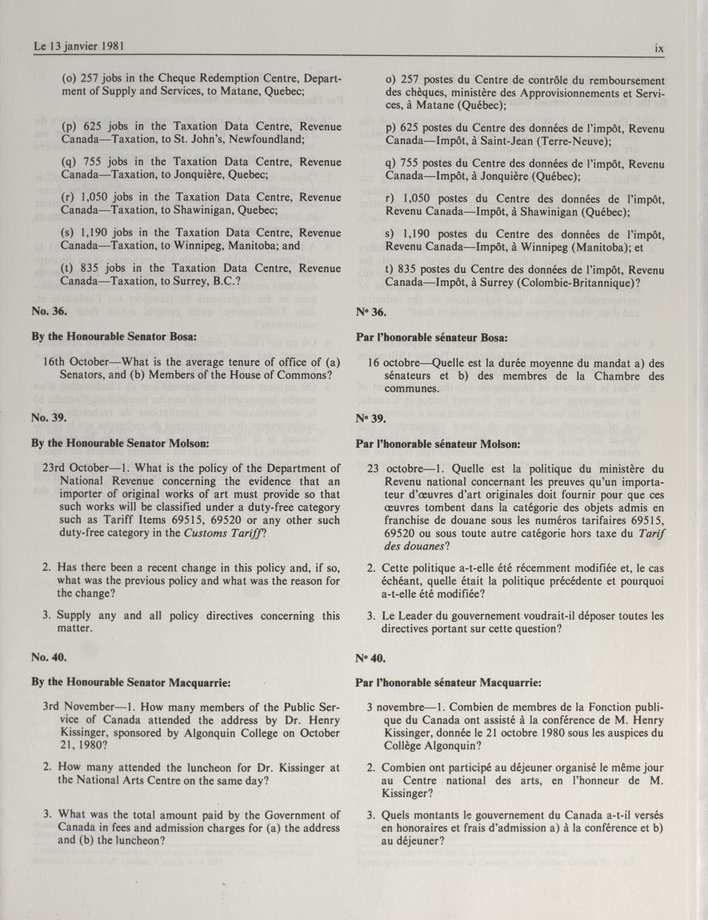 Senate Minutes of Proceedings, 32nd Parliament, 1st Session : 41-77 = Procès-verbaux du Sénat, 32e Législature, 1re Session : 41-77