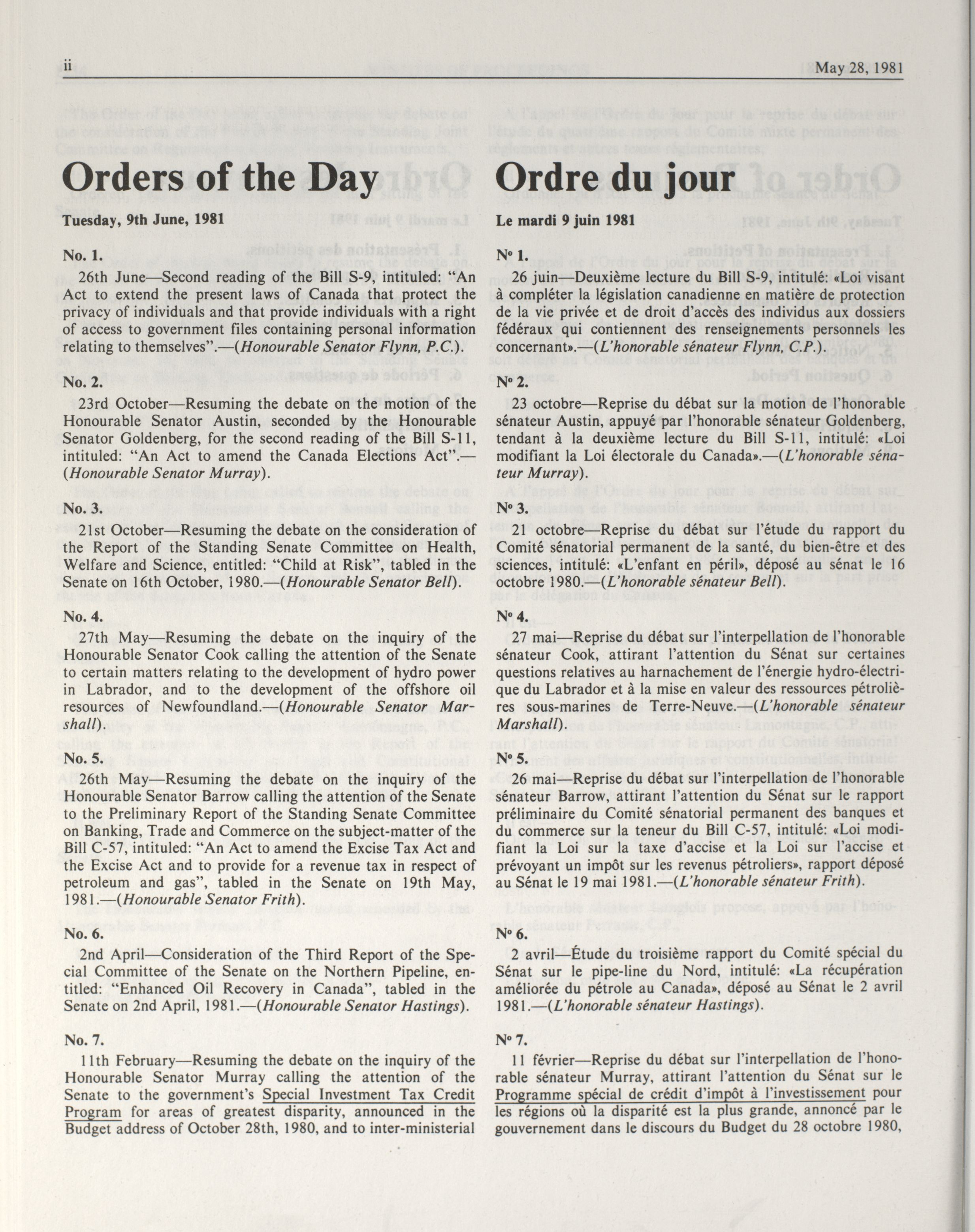 « Senate Minutes of Proceedings, 32nd Parliament, 1st Session