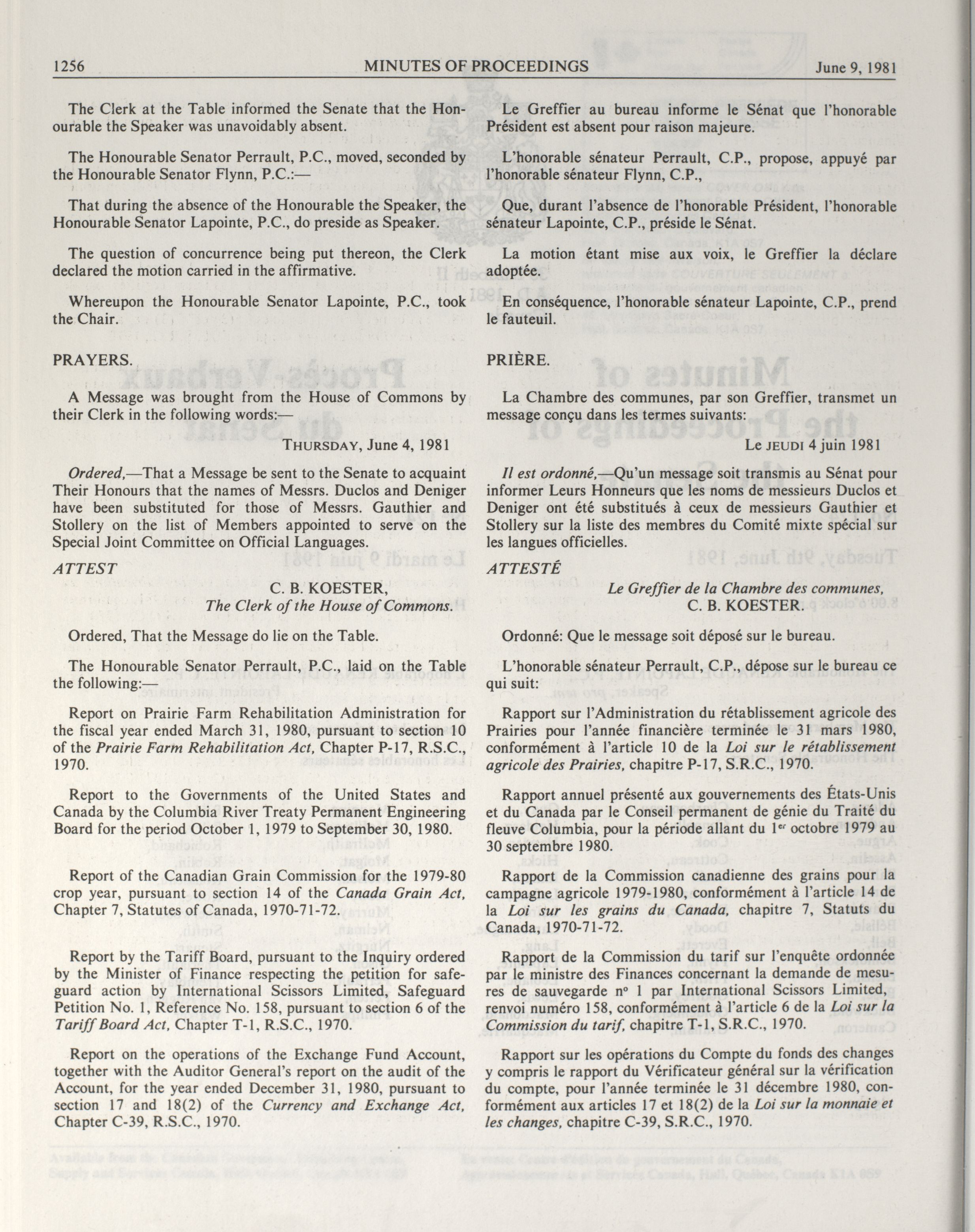« Senate Minutes of Proceedings, 32nd Parliament, 1st Session