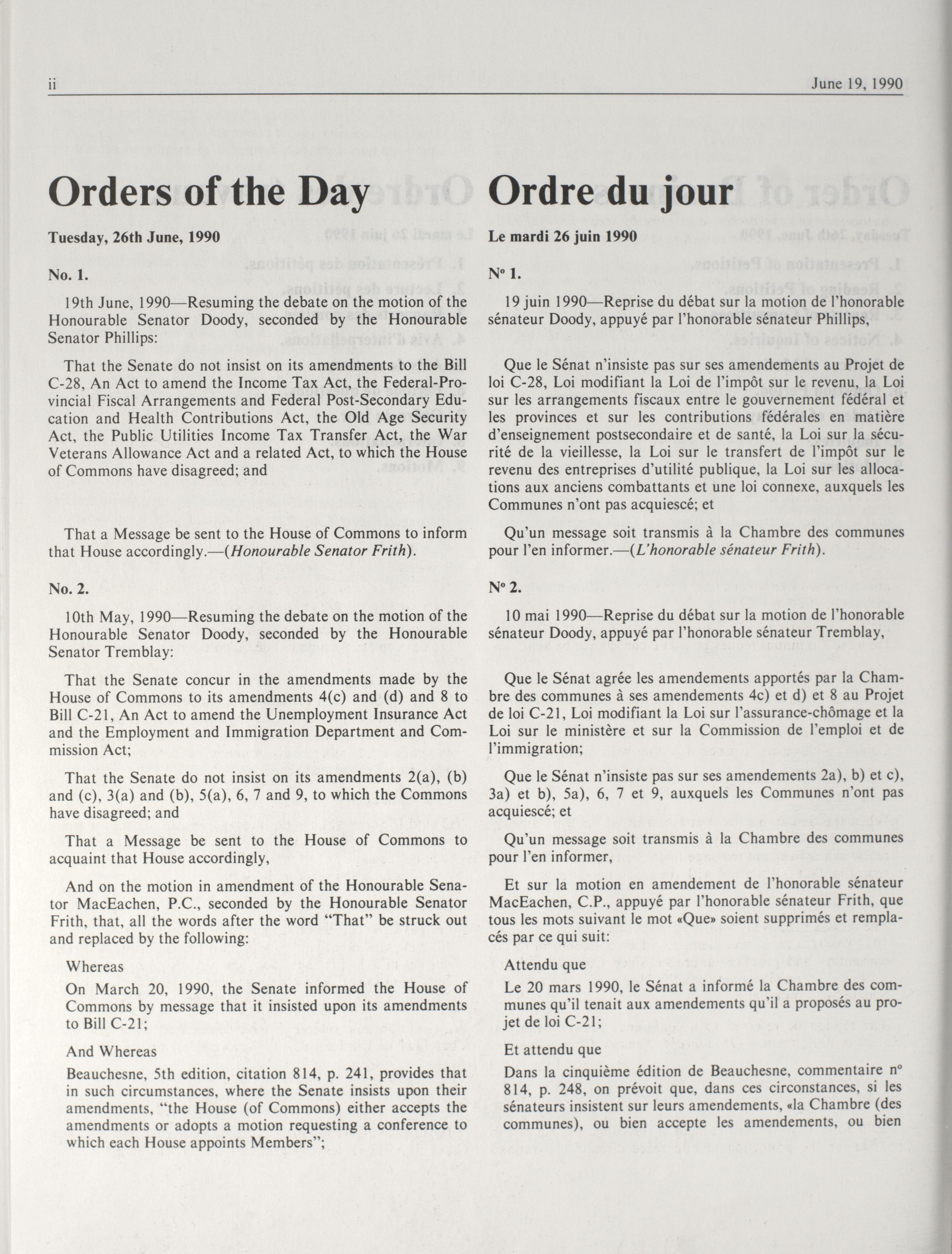 « Procès-verbaux du Sénat, 34e Législature, 2e Session