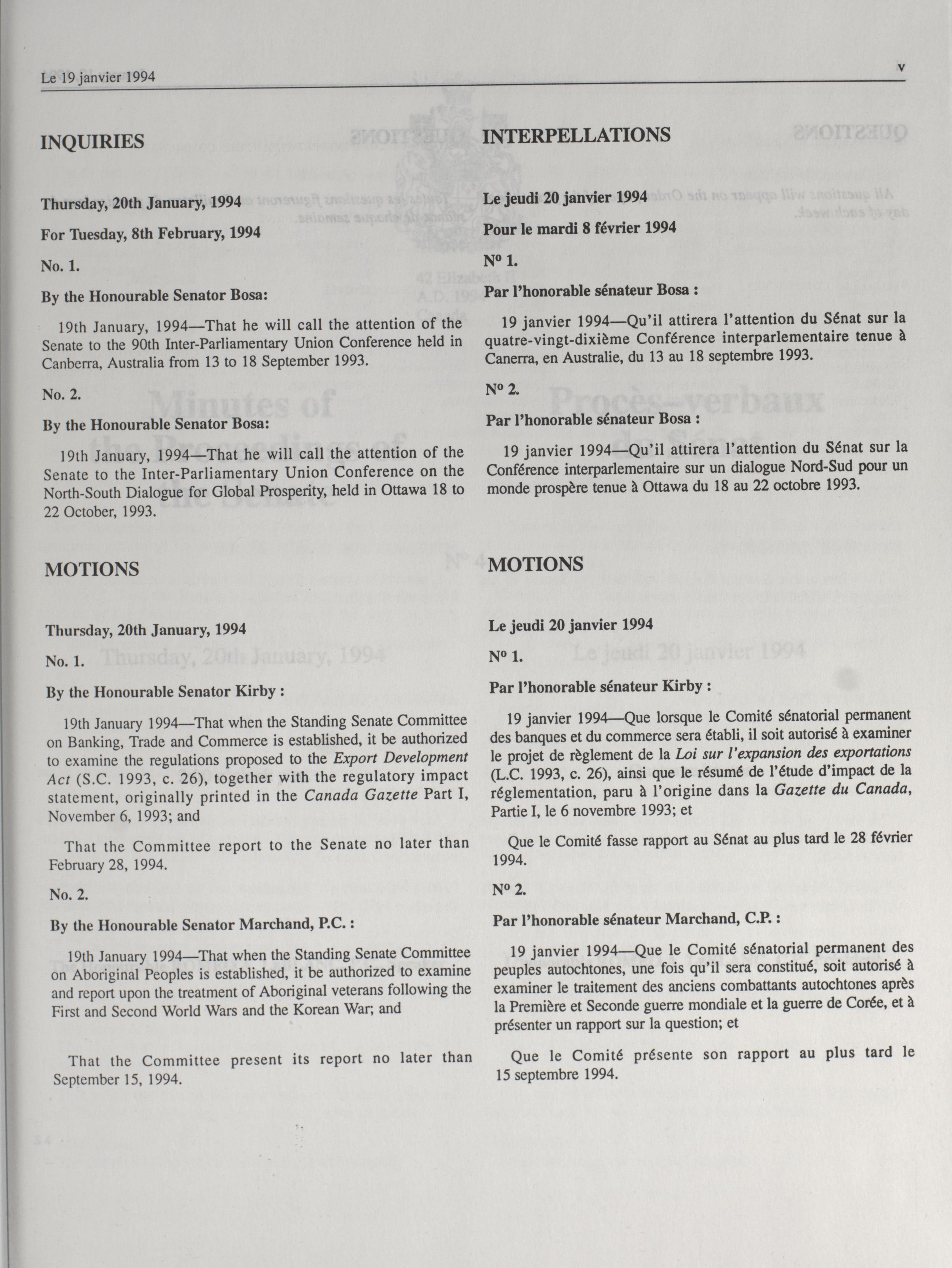 Senate Minutes of Proceedings, 35th Parliament, 1st Session : 1-41 = Procès-verbaux du Sénat, 35e Législature, 1re Session : 1-41